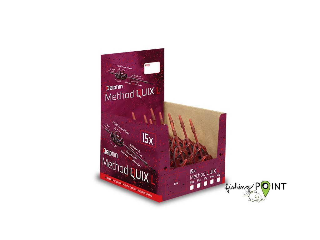 Špičkové method feederové krmítko, navržené vývojovým týmem značky Delphin. Už na první pohled se vyznačuje specifickým tvarem žeber, díky kterému krmivo během nahazování výborné drží na krmítku a po dopadu na dno se snáze uvolňuje. Velkou výhodou krmítka QUIX je možnost snadné výměny olověné části spolu s tělem. Umožňuje to vyjímatelná trubička a drážka na olověné části. Po vysunutí trubičky z těla krmítka jej stačí složit z vlasce a použít jiné s rozdílnou hmotností. Taková variabilita vám poskytne možnost přizpůsobení se různým podmínkám během lovu, bez nutnosti zdlouhavého převazování koncové sestavy. Tvar olověné zátěže spolu s výstupky zajišťuje nejen výborné rozložení hmotnosti, ale také perfektní stabilizaci na dně v lovném místě. Díky aerodynamickému tvaru a prodloužené trubičce je s krmítkem možné dosahovat velké vzdálenosti během nahazování. Punc originality dodává produktu typická bordó barva a černé závaží s červenými skvrnami. V základu je krmítko dodáváno s rychlovýměnným obratlíkem s pojistkou a gumičkou proti zamotání. Technické parametry: krmítko 55x30x25mm délka trubičky 85mmDoplňkové parametry