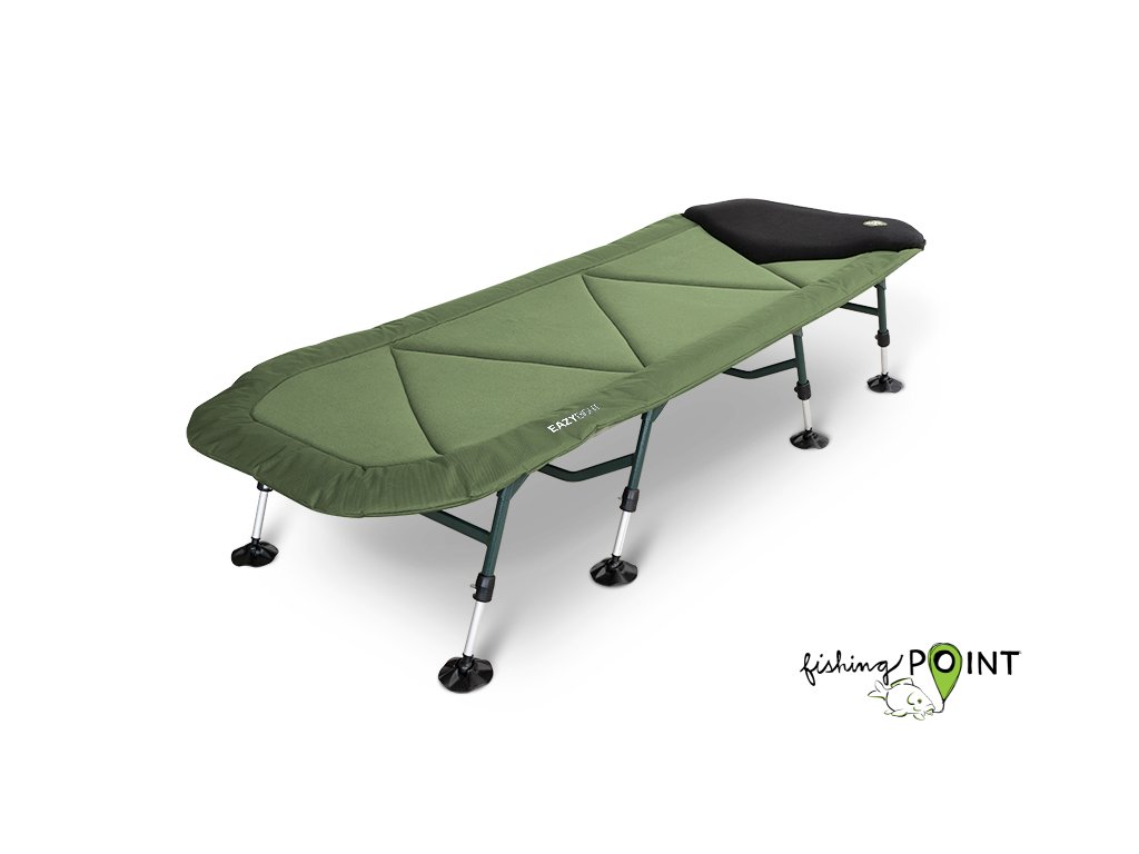 Komfortní osminohé lehátko, při kterém se skloubil excelentní poměr pohodlí, funkčnosti a příznivé pořizovací ceny. Jeho základem je velmi pevná, odolná a zároveň lehká konstrukce zelené barvy, která spolu s osmi nohami dodává lehátku potřebnou stabilitu. Výškově nastavitelné nohy jsou na koncích opatřeny robustními patkami na kulových čepech, což jim umožňuje přizpůsobit se nerovnostem terénu. Pár nohou pod hlavou je navíc opatřen zajišťovacím mechanismem, což usnadňuje rozložení lehátka a zároveň zabraňuje nechtěnému sklápění či posunu. Matrace je z vrchní části tvořena fleecovým materiálem s efektním prošíváním, čímž je velmi pohodlná, hřejivá a designově originální. Kromě toho je po obvodu opatřena odolnou 600D látkou zelené barvy, která přispívá k prodloužení životnosti produktu. Pro maximální pohodlí je ve vrchní, hlavové části extra polstrovaný fleecový panel. Tuhost matrace lze nastavit v části nohou a hlavy dotažením pevného lana, které je vedeno spodními okraji. Pokud tedy hledáte pohodlné lehátko za rozumnou cenu, určitě byste se měli poohlédnout právě po modelu EazyEIGHT8. Technické parametry: Rozměry matrace: 200x75cm Výška postele: 30-40cm Fixovatelný kloub: ne Hmotnost: 9,5kg Přepravní rozměry: 75x77x30cmDoplňkové parametry