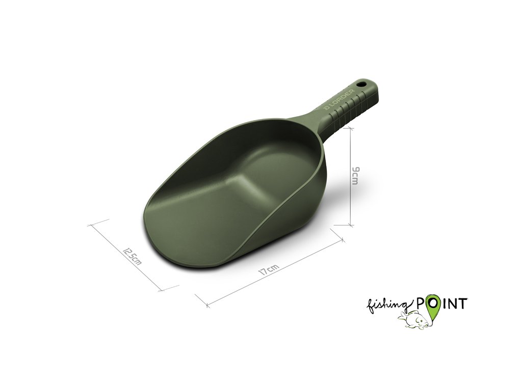 Praktický pomocník při přípravě krmení a samotném zakrmování. Lopatka LOADER je kompletně vyrobena z pevného, velmi odolného plastu, který se snadno čistí a příjemně drží v ruce. Masivní plastová rukojeť dobře padne do dlaně a usnadňuje nabírání i následné zakrmování. Model LOADER L pojme jedním nabráním značné množství krmení. Což oceníte zejména při masivním vnadění. Díky provedení bez děr je ideální i pro krmení s vyšším podílem tekutých složek, jako jsou boostry, zig mixy či jiné tekuté atraktory. Technické parametry: Delphin LOADER L Celková délka s rukojetí: 27cm Rozměr naběračky (dxš): 17x12.5cm Hmotnost: 100gDoplňkové parametry