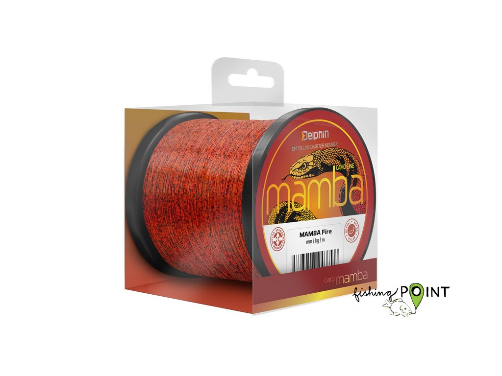 Excelentní kaprařský vlasec s unikátním 3D vzorem. MAMBA disponuje vynikajícími vlastnostmi jako pevnost a nosnost v uzlu. Díky svému jedinečnému kamuflážovému provedení rychle splyne s okolním prostředím. Jeho pevnost a odolnost vůči oděru ho předurčují k použití i do náročných podmínek a jeho mimořádně hladký a jemný povrch umožňuje využití při dalekém nahazování. Díky těmto vlastnostem je Delphin MAMBA považován za univerzální kaprařský vlasec, který splňuje ty nejnáročnější požadavky, a na který se můžete spolehnout v každé situaci.