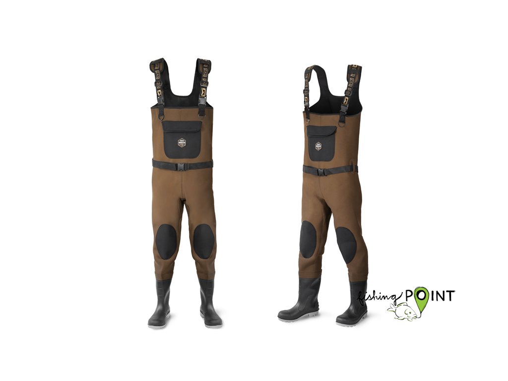 Při zimním rybaření je třeba myslet hlavně na tepelný komfort. Ten dokážou ideálním způsobem zajistit neoprenové prsačky Delphin ORAVA. Vyznačují se kvalitním provedením a elegantním designem. Každé prošití a namáhané spoje jsou precizně ošetřeny, aby zabránily nechtěnému prosakování. Hnědá barva neoprenu zamezí vzniku velkého množství viditelných skvrn ze slizu a dalších různých nečistot. Neodmyslitelným pomocníkem je neoprenová kapsa na přední straně prsaček, kde si můžete odložit například povolení k rybolovu. Nemusíte se bát ani kleknutí na zem, protože v kolenní části jsou prsačky zpevněny dvojitou vrstvou neoprenu. Nastavitelné popruhy na ramena jsou také vybaveny neoprenovou výstelkou, aby bylo nošení prsaček během celodenních vycházek pohodlné a ramena méně namáhána. Pod šlemi se také nacházejí dva plastové kroužky, na které lze pomocí joja, nebo karabiny uchytit různé pomůcky, jako například pean nebo metr. Součástí balení je i brodící pásek, který zamezí natečení vody do prsaček při nechtěném uklouznutí nebo pádu. Pryžové kozačky s odolnou a stabilní podrážkou vás podrží i v náročnějších podmínkách. Jejich vnitřek je vystlán neoprenovou vložkou, která chrání nohy před chladem. Složení: Neopren/PVC Tloušťka neoprenu: 4 mmDoplňkové parametry