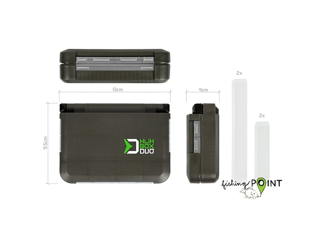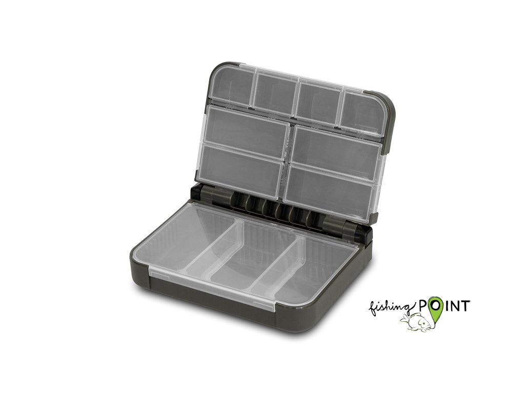 Kompaktní organizér určený především pro uložení drobné bižuterie, která je nedílnou součástí výbavy při zhotovování koncových montáží. Název Duo napovídá, že úložný prostor tvoří obě strany organizéru. Spodní část je rozdělena na čtyři podlouhlé přihrádky, které jsou vhodné zejména na gumičky proti zamotání nebo smršťovací bužírky, a čtyři menší přihrádky čtvercového tvaru, vhodné na háčky, obratlíky, rovnátka a další drobnou bižuterii nezbytnou při tvorbě koncových montáží. Vrchní část je nerozdělená, což vám umožňuje vložit do organizéru prvky, které by do spodní části nevešly. Díky pevnému a průhlednému uzavírání máte dokonalý přehled o obsahu a zároveň se nemusíte obávat nechtěného rozsypání. Organizér je vyroben z mimořádně odolného plastu a jeho komfortní otevírání a zavírání zajišťuje robustní plastový pant. Díky svým kompaktním rozměrům jej bez problémů uložíte i do bočních kapes na batohu či v tašce. Technické parametry: Vnější rozměry: 13x9,5x4cmDoplňkové parametry