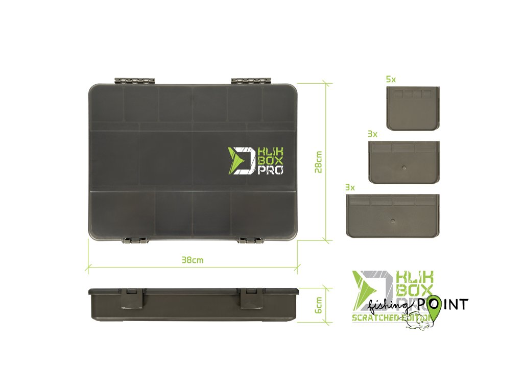 Již z názvu vyplývá, že se jedná o nejpropracovanější a největší organizér ze série KlikBOX. Jeho úložný prostor dokonale pojme velké množství drobné bižuterie, koncových montáží, návazcových materiálů a dalšího příslušenství, které je nedílnou součástí vaší výbavy. Ze série KlikBOX se varianta PRO vyznačuje hlavně největším úložným prostorem. Ten je rozdělen na tři hlavní části, doplněné o polohovatelné přepážky. Díky nim si můžete vnitřní uspořádání přizpůsobit přesně podle svých představ. Organizér obsahuje také dva menší boxy KlikBOX mini 3 a 4, které jsou vhodné pro uložení drobné bižuterie. Aby se předešlo nechtěnému otevření, jsou vybaveny pevným plastovým klipem. Součástí organizéru je i odnímatelné plato KlikRIG z tvrzené pěny a špendlíky, které umožňují pohodlné uchycení vašich koncových montáží. Díky své velikosti a odnímatelnosti je KlikRIG vhodný i pro dlouhé montáže, které jsou oblíbené zejména při lovu ve sloupci metodou ZIG RIG. Pokud by se vám zdál úložný prostor pro vaše montáže nedostatečný, můžete si dokoupit další organizér KlikBox RIG, který se díky svým rozměrům perfektně vejde k původnímu organizéru v boxu. KlikBOX Pro vám tedy umožní sbalit vše potřebné k lovu tak, abyste byli vždy dokonale připraveni. K uzavření organizéru poslouží masivní klipy, které se postarají o to, aby vše zůstalo na svém místě. Devizou tohoto boxu jsou i kompaktní vnější rozměry, díky čemuž nebude problém přenášet jej v CarryAll tašce nebo batohu. Do organizéru KlikBOX Pro ideálně pasují i některé menší organizéry ze série KlikBOX a to konkrétně KlikBox Duo a Mini 8, které lze samostatně zakoupit. V balení se nachází 10 špendlíků.Technické parametry: