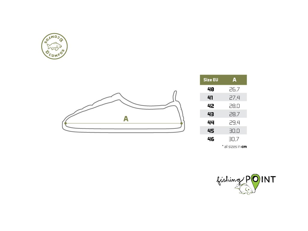 Pantofle Comfos v originální kamufláži C2G jsou navrženy speciálně pro milovníky rybolovu, kempování, turistiky a pro všechny, kteří se rádi pohybují v přírodě. Tyto pantofle jsou lehké, kompaktní a snadno je přibalíte do vašeho zavazadla, což z nich činí ideálního partnera na dobrodružství mimo civilizaci. Pantofle jsou navrženy s důrazem na pohodlí, o což se stará pohodlná stélka, která poskytuje úlevu vašim unaveným nohám po dni plném aktivit. Odolná a robustní pogumovaná podrážka poskytuje dostatečný grip s terénem, což je neocenitelné v případě potřeby pohybu mimo stan či bivak, například během neočekávaného záběru ryby. Povrch pantoflí je snadno omyvatelný a odolný vůči špíně a prachu. Kromě všech zmíněných výhod jsou pantofle velmi stylové, a díky modernímu designu se v nich budete cítit dobře v přírodě, ale také při relaxu v kempu.Doplňkové parametry