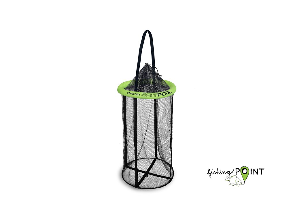 Síťka Delphin BaitPOOL je praktické řešení pro uchovávání nástražních rybek pro lov dravých ryb.Štědré rozměry umožňují přechovávání i větších rybek jako jsou karasi, cejni nebo líni. Kolem obvodu horní části síťky se nachází kruhový plovák, který drží síťku ve svislé poloze. Takové řešení zajišťuje plné rozvinutí síťky ve vodním sloupci a tím vždy dostatek prostoru pro volný pohyb rybek. Výhodou je také rychlé vkládání a vyjímání rybek širokým zatahovacím otvorem. Součástí síťky je i popruh pro uchycení například o vidličku, díky čemuž lze síťku umístit dále od břehu do hlubší vody. Síťovina má pogumovaný povrch, který se méně deformuje v porovnání s klasickými sítěmi, čímž eliminuje zamotávání rybek. Měkký povrch síťky nepoškozuje sliz ryb, což napomáhá uchovávat rybky dlouhodobě v dobré kondici. Síťka je snadno čistitelná a nenasává nežádoucí pachy.