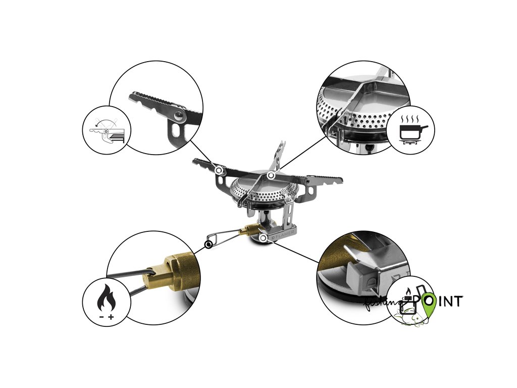 Delphin FLAMER je plynový vařič, vyznačující se svojí kompaktností, skladností a vysokým výkonem. Dokonale se hodí k pobytu při vodě, turistiku, kempování či jiné outdoorové aktivity. Díky jeho rozměrům a nízké hmotnosti (180g) jej jednoduše můžete mít vždy s sebou a v případě potřeby si snadno ohřát či připravit pokrm. Vařič je kompatibilní s propan-butanovými kartušemi, které jsou vybaveny samotěsnícím ventilem se závitem 7/16. Pro maximálně snadnou manipulaci je FLAMER opatřen praktickou regulací průtoku plynu a piezoelektrickým zapalováním. Díky tomu už nebudete potřebovat žádné zápalky či zapalovač. Výkon 3000 W a vyklápěcí lopatky, zaručí rychlý plošný ohřev pánví, hrnců či jiného outdoorového nádobí. Velkým bonusem je transportní pouzdro z pevného plastu, které obdržíte v základním balení. Technické parametry: Výkon vařiče: 3000 W Váha vařiče: 180g Typ spojení s kartuší: závit 7/16Doplňkové parametry