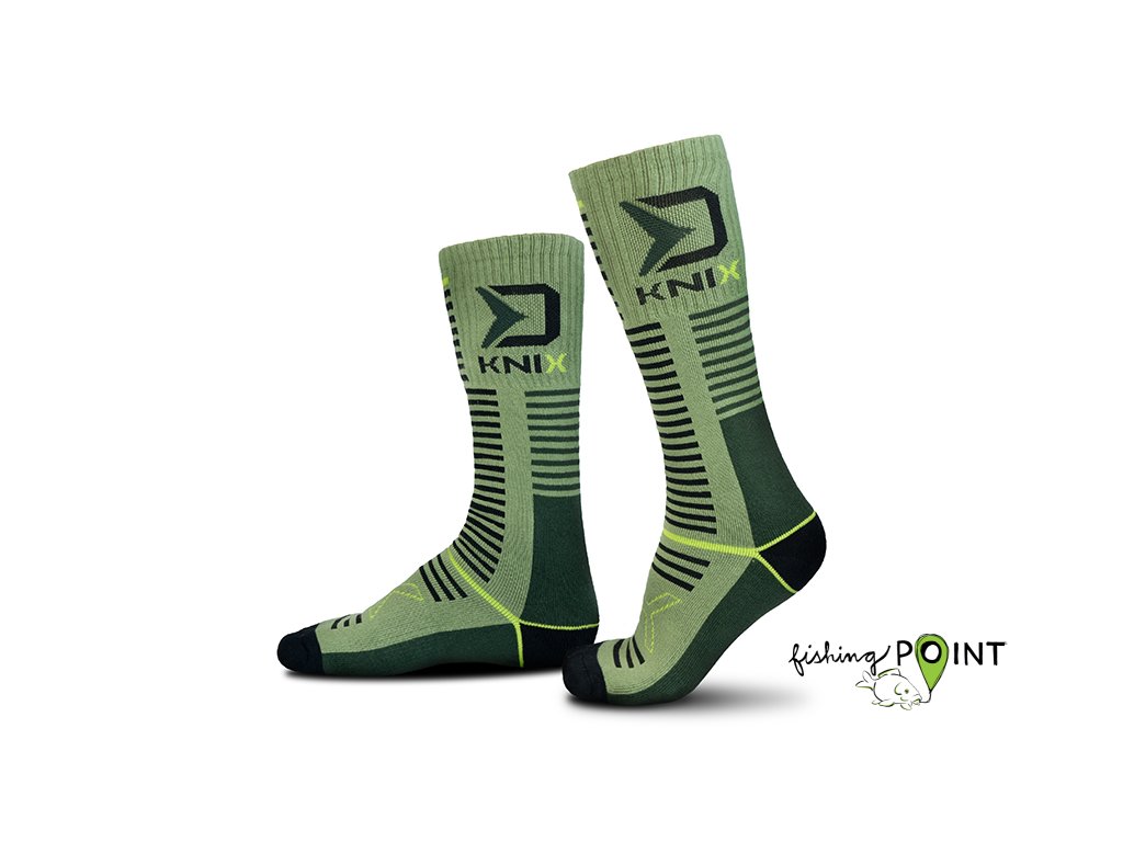 Termo podkolenky poskytující tepelný komfort během chladných podzimních a zimních dnů strávených u vody nebo na toulkách přírodou. Jsou vyrobeny z hřejivé a pružné tkaniny, která se skvěle přizpůsobí tvaru chodidla a netlačí na lýtkách. V horní části se nachází praktická gumička zajišťující fixaci podkolenek v požadované pozici. Barevná kombinace zelených odstínů v kombinaci s černými a fluo žlutými prvky vytváří efektní design, vyladěný velkým logem Delphin a nápisem KNIX. Dodáváme je ve třech rozměrech se širokým rozpětím velikostí, díky čemuž si každý vybere pro sebe tu ideální. Technické parametry: Materiálové složení: 85% bavlna, 10% elastan, 5% polyesterDoplňkové parametry