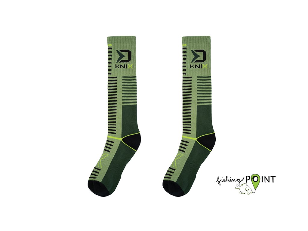 Termo podkolenky poskytující tepelný komfort během chladných podzimních a zimních dnů strávených u vody nebo na toulkách přírodou. Jsou vyrobeny z hřejivé a pružné tkaniny, která se skvěle přizpůsobí tvaru chodidla a netlačí na lýtkách. V horní části se nachází praktická gumička zajišťující fixaci podkolenek v požadované pozici. Barevná kombinace zelených odstínů v kombinaci s černými a fluo žlutými prvky vytváří efektní design, vyladěný velkým logem Delphin a nápisem KNIX. Dodáváme je ve třech rozměrech se širokým rozpětím velikostí, díky čemuž si každý vybere pro sebe tu ideální. Technické parametry: Materiálové složení: 85% bavlna, 10% elastan, 5% polyesterDoplňkové parametry