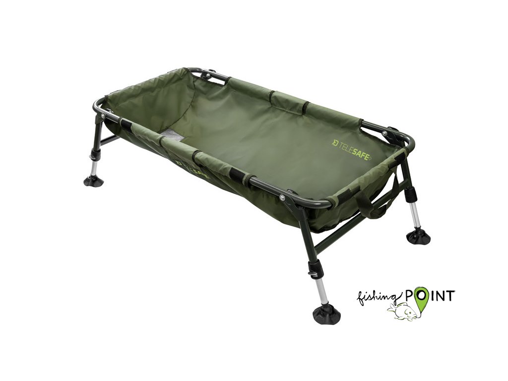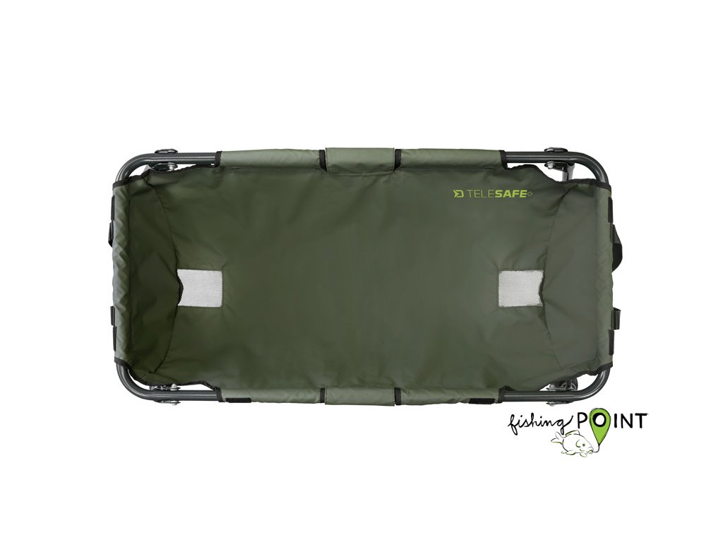Základem pro Delphin TeleSAFE+ se stala rybáři velmi oblíbená vanička EAZYSAFE. U tohoto modelu jsme ovšem dvěma podstatnými úpravami vylepšili komfort jejího používání. Tou první úpravou jsou teleskopicky nastavitelné nohy, které v tomto případě umožňují vaničku rozložit i v nerovném či kamenitém terénu, díky čemuž bude mít výbornou stabilitu za jakýchkoliv okolností. Druhým bonusem je překrytí kloubů ve středové části konstrukce, což podstatně minimalizuje možnost poškození úlovku či poranění rybáře.Základ vaničky TeleSAFE+ je tvořen pevnou železnou konstrukcí o průměru trubek až 22 mm. Použitá látka s pogumovaným povrchem má také několik výhod. Po ukončení lovu ji stačí do sucha vytřít a není tak nutné dlouho čekat než vyschne. Navíc je velmi lehce omyvatelná a neabsorbuje do sebe nepříjemné pachy, které se mohou následně šířit při transportu ve vašem autě. Celá vanička je velmi pevná a při extrémních testech bez problémů zvládla udržet statické závaží o váze až 75kg! Na obou krajích je všitá síťková látka, přes kterou zevnitř lehce odteče voda. TeleSAFE+ disponuje také látkou na překrytí, která je opatřena suchými zipy. Můžete tak v ní rybu uzavřít, pokud si například potřebujete připravit fotoaparát, případně jít nabrat vodu k polití úlovku.