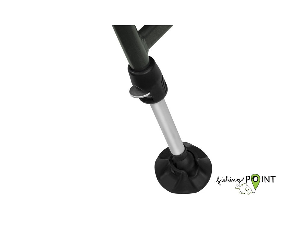 Teleskopické nohy jsou opatřeny kloubovými patkami, které se přizpůsobí terénu a zamezí zaboření do země v případě měkčího podkladu. Při navrhování jsme však mysleli také na transport, což je další silná stránka tohoto produktu. Ve středu je konstrukce důmyslně předělená, a tak ji stačí jednoduše přeložit napůl a pomocí rukojetí pohodlně přenášet.