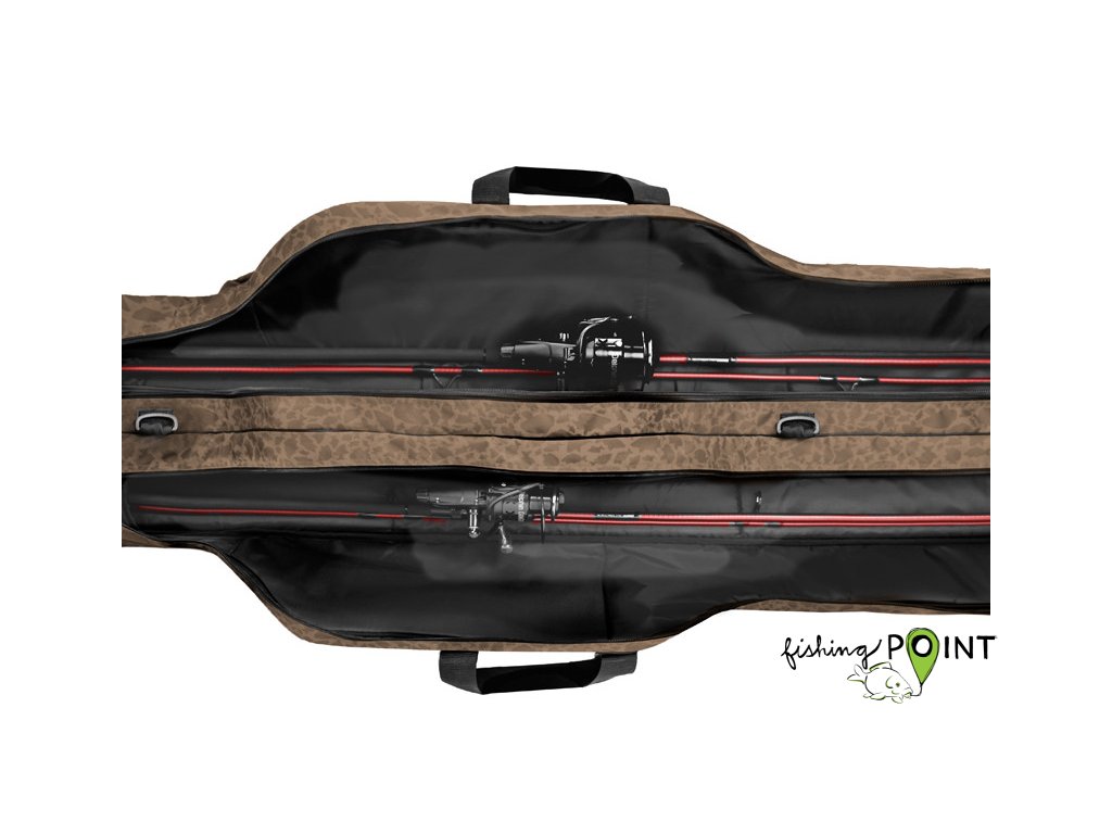 Prémiové a do detailů propracované kaprařské pouzdro, doplňující sérii produktů z řady AREA s jedinečnou kamufláží CARPATH.Stěny pouzdra jsou důkladně polstrované 6mm hrubou výstelkou a vnitřní prostor poskytuje dostatek místa pro pohodlné uložení jakýchkoliv kaprařských prutů s navijáky. Dokonce i pruty s 50mm naváděcím očkem se do pouzdra vejdou snadno a s dostatečnou rezervou. Každá komora má zvláštní zipovatelný vstup, což zajišťuje, že pruty jsou po celou dobu od sebe odděleny a dokonale zafixované pomocí praktických uložení ve spodní části a také páskami se suchým zipem. Díky zmíněným vlastnostem je zaručeno, že během transportu a při manipulaci s pouzdrem je výbava uvnitř maximálně chráněna. Pouzdro je vyrobeno z velmi kvalitní textilie, která si bez problémů poradí i s menším úhrnem srážek. Po celé spodní straně je našitý odolný nepromokavý materiál, díky čemuž se ho nemusíte obávat položit na mokrou zem, či do trávy s ranní rosou. V případě znečištění, je velmi jednoduché tento materiál omýt. Charakteristickým znakem pro Delphin AREA DoubleSAFE je také jeho "reverzní" provedení, což znamená, že prut se dovnitř vkládá s navijákem orientovaným směrem nahoru. Hlavní výhoda takového provedení spočívá v tom, že nedochází při položení pouzdra ke kontaktu navijáků se zemí. Tím pádem jsou lépe chráněny a je minimalizována šance jejich poškození.