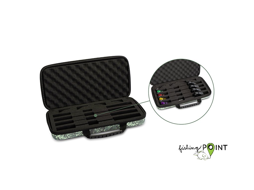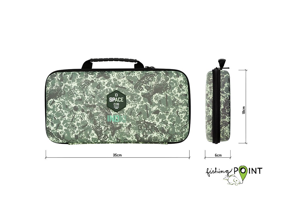 S pouzdrem IndIQ budou vaše signalizátory záběru perfektně chráněny a organizovány, takže si je vždy najdete nepoškozené, v dobrém stavu a připravené do akce. Je vyrobeno z tvrzeného materiálu s potiskem C2G, který je odolný, drží si tvar a lépe odolává vnějším vlivům než běžné látkové tašky. Kvalitní zip se dvěma běžci umožňuje zcela uzavření pouzdra. V přední části se nachází pogumované madlo, určené pro pohodlný přenos a vyjímání z větších tašek. Na tvrzené pěně uvnitř se nacházejí čtyři univerzální výřezy pro závěsné signalizátory, jako CAPRY, TRYO, SKIPER, ale i jiné signalizátory podobného typu, které jsou dostupné na trhu. Vrchní část má pěnovou výplň, která signalizátory fixuje a eliminuje tak možnost jejich nechtěného vypadnutí či poškození během přenosu. Delphin SPACE je označení pro exkluzivní sérii tašek z dílny značky Delphin. Vyznačuje se špičkovým zpracováním, kvalitními zipy, ale zejména výjimečným designem s použitím C2G kamufláže. Technické parametry Rozměry: 35x18x6cmDoplňkové parametry