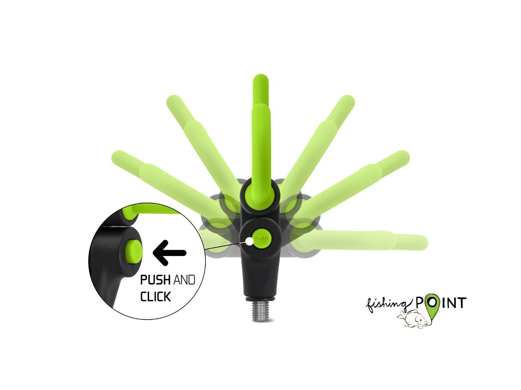 Držák na feeder tvaru L je výborným pomocníkem každého feederisty. Tvar držáku umožní udržet prut ve vidličkách i při silném záběru. Díky důmyslnému systému tlačítka ve spodní části, lze tento držák polohovat a následně polohu zajistit. Šířka ramen je 17cm. Držák je osazen univerzálním závitem a je kompatibilní s většinou vidliček a stojanů dostupných na trhu. Barevná zeleno-černá kombinace dokonale doplňuje feederovou řadu REAXE.Doplňkové parametry