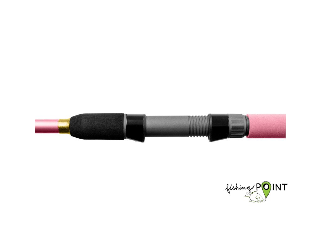 Základem je ověřený štíhlý blank s parabolickou akcí a výbornými mechanickými vlastnostmi. Celá rukojeť je potažena EVA pěnou, která je velmi příjemná na dotek i ve studeném zimním počasí. Navíc je navržena v barevné dvojkombinaci růžové s černou, což vytváří vizuálně velmi pěkný prvek. Rukojeť je v jednom místě ergonomicky zúžená a ukončena je vkusným hliníkovým prvkem růžové barvy s logem. Díky citlivým špičkám, které jsou s prutem dodávány, vám neunikne ani ten nejjemnější záběr od malých ryb. Blank je osazen kvalitními a lehkými SIC očky, které nevytvářejí žádné nadbytečné tření a odpor při průchodu vlasce. V základu je prut dodáván se 1. karbonovou (Heavy) a 2. CarbonGlass (Light, Medium) špičkami.