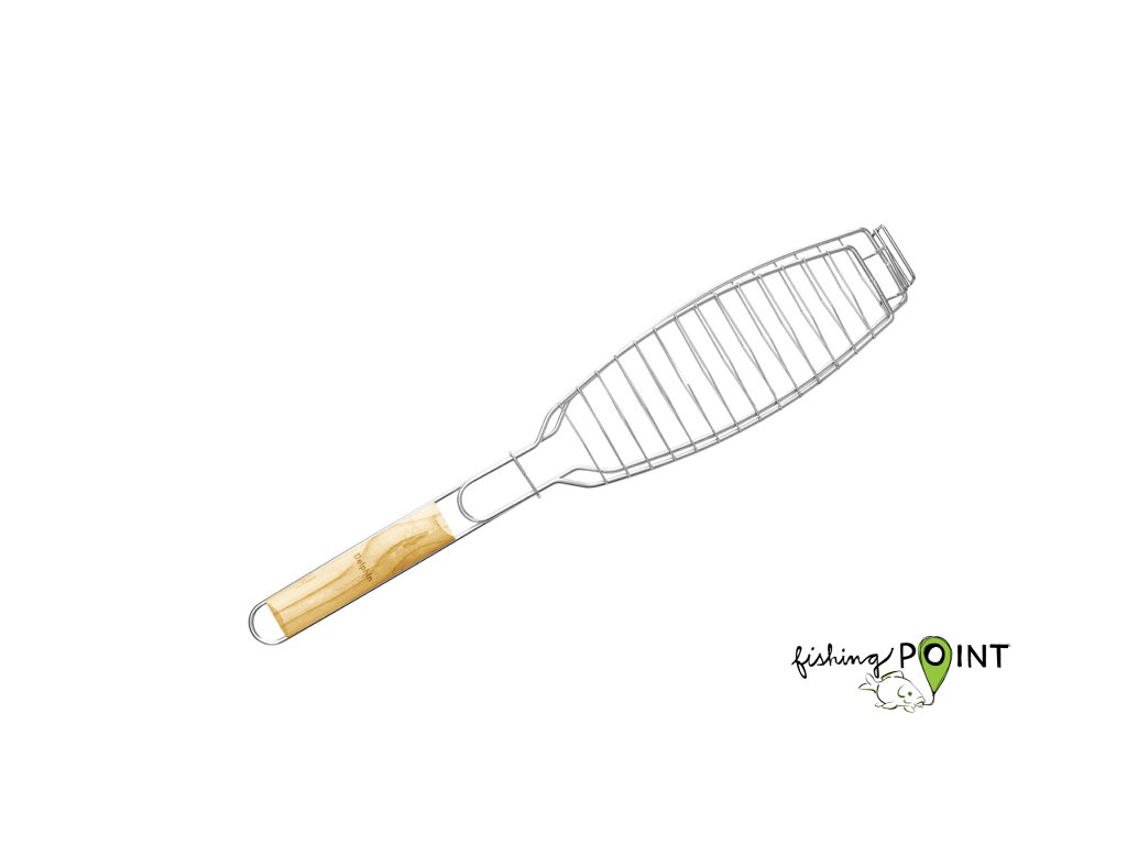 Grilovací rošt určený zejména pro přípravu ryb. Mezi dvě rozložitelné části roštu vložte rybu a grilujte. Nezapomeňte rošt otáčet. Má dřevěnou rukojeť, kovové části jsou chráněné proti korozi. Díky dvojitému polohování můžete připravovat různé ryby či maso. Technické parametry: Celkové rozměry: 60x11x3cm Délka grilovací části: 30cm Hmotnost: 369gDoplňkové parametry