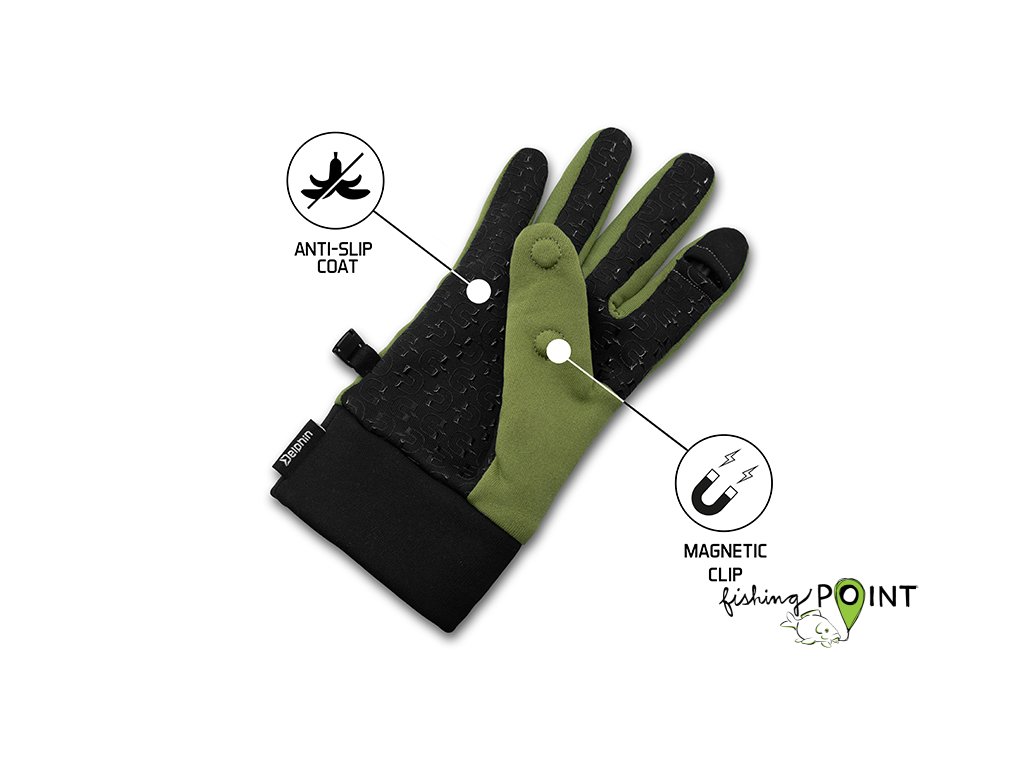 Vysoce praktické rukavice určené pro lov v chladnějších měsících, disponující možností odnímání konců ukazováčku a palce. Fixování těchto částí je možné pomocí inovativního systému, který jsme vytvořili použitím magnetů, všitých mezi dvě vrstvy tkaniny. Samotná tkanina je z vrchní strany hladká a flexibilní, ze spodní strany má pogumování ve tvaru magnetů zlepšující uchopení a protiskluzové vlastnosti rukavic. Vnitřní fleecová vrstva je měkká a hřejivá, což zaručuje skvělý komfort během zimního lovu ryb. Rukavice MagneTIP mají zdvojenou látku v oblasti zápěstí pro dodatečné zvýšení izolačních vlastností a lepší obepnutí zápěstí. Barevně jsou vyladěny do zelené barvy s efektní grafikou, stylově zkombinované s černou. Obě rukavice mají jednu stranu plastového klipu, pomocí kterého si je můžete spojit a odložit do tašky pro případ potřeby. Technické parametry: Materiálové složení: 100% Spandex a flísDoplňkové parametry