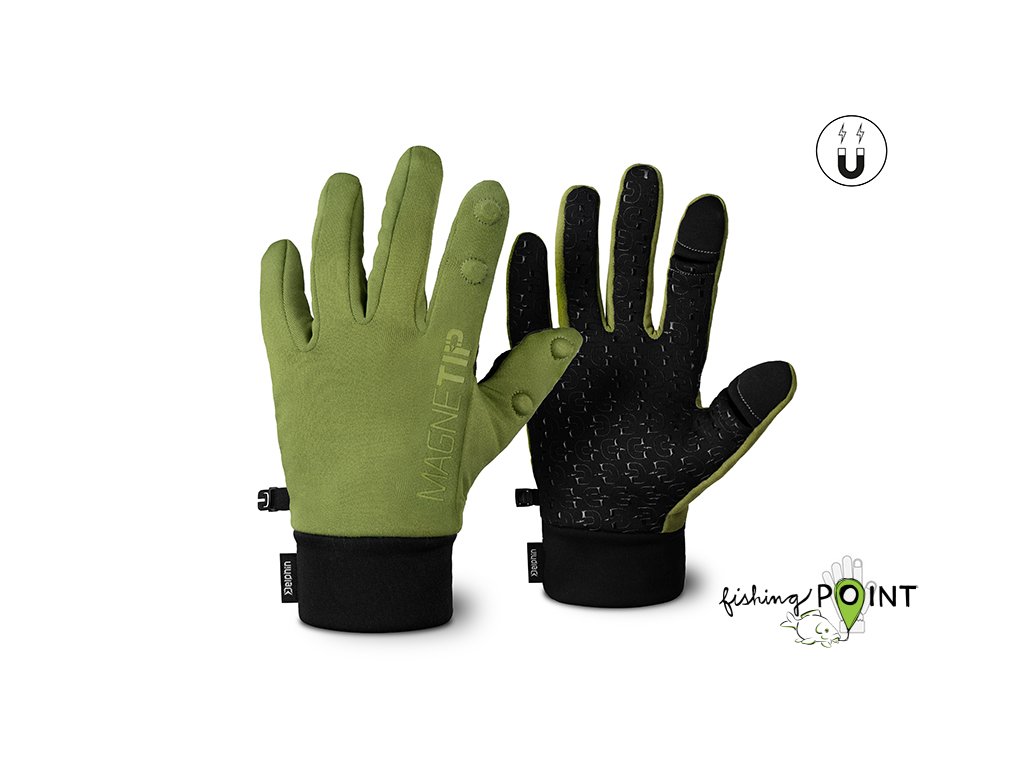 Vysoce praktické rukavice určené pro lov v chladnějších měsících, disponující možností odnímání konců ukazováčku a palce. Fixování těchto částí je možné pomocí inovativního systému, který jsme vytvořili použitím magnetů, všitých mezi dvě vrstvy tkaniny. Samotná tkanina je z vrchní strany hladká a flexibilní, ze spodní strany má pogumování ve tvaru magnetů zlepšující uchopení a protiskluzové vlastnosti rukavic. Vnitřní fleecová vrstva je měkká a hřejivá, což zaručuje skvělý komfort během zimního lovu ryb. Rukavice MagneTIP mají zdvojenou látku v oblasti zápěstí pro dodatečné zvýšení izolačních vlastností a lepší obepnutí zápěstí. Barevně jsou vyladěny do zelené barvy s efektní grafikou, stylově zkombinované s černou. Obě rukavice mají jednu stranu plastového klipu, pomocí kterého si je můžete spojit a odložit do tašky pro případ potřeby. Technické parametry: Materiálové složení: 100% Spandex a flísDoplňkové parametry