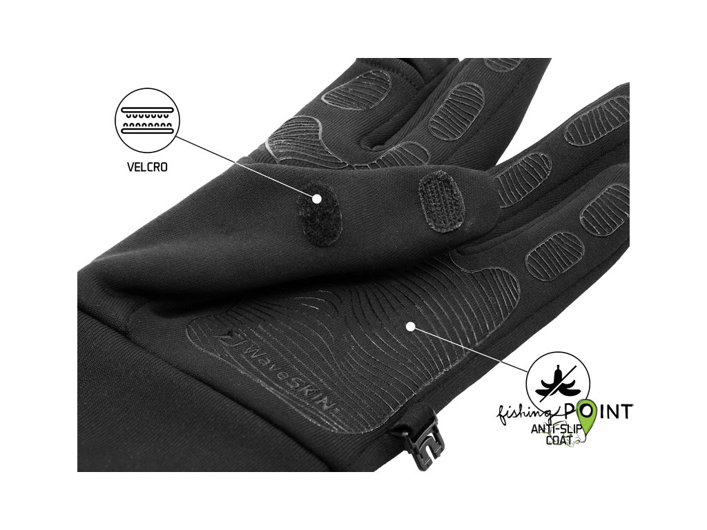 Pokud hledáte rukavice, které vás ochrání za každého počasí a ve kterých budete vypadat maximálně stylově, Delphin BlackWAY Free jsou tou správnou volbou. Rukavice jsou zárukou elegance a funkčnosti. Jak už název napovídá, rukavice jsou černé barvy a obsahují efektní logo BlackWAY, čímž jsou kromě rybaření vhodné do přírody, ale i pro běžné nošení ve městě. Tenká, ale přitom velmi účinná teplotní izolace spolu s ergonomickým střihem umožňuje maximální volnost pohybu vašich prstů. Speciální pogumovaný povrch SkinTouch odpuzuje vodu a zvyšuje tření mezi plochami, což zaručuje spolehlivý úchop i kluzkých povrchů. Měkká výstelka rukavic a přizpůsobený střih poskytují jedinečný komfort během nošení. Jednou ze skvělých výhod rukavic jsou odnímatelné konce ukazováčku a palce, jejichž polohu lze fixovat pomocí suchých zipů a díky kterým můžete rychle provázat montáž nebo vyměnit nástrahu bez potřeby svléknutí rukavic. Plastový klip na rukavicích umožňuje rukavice společně sepnout. Nezvolňujte ze svého stylu i když se nacházíte v lůně přírody a užijte si rybaření s elegancí!Doplňkové parametry