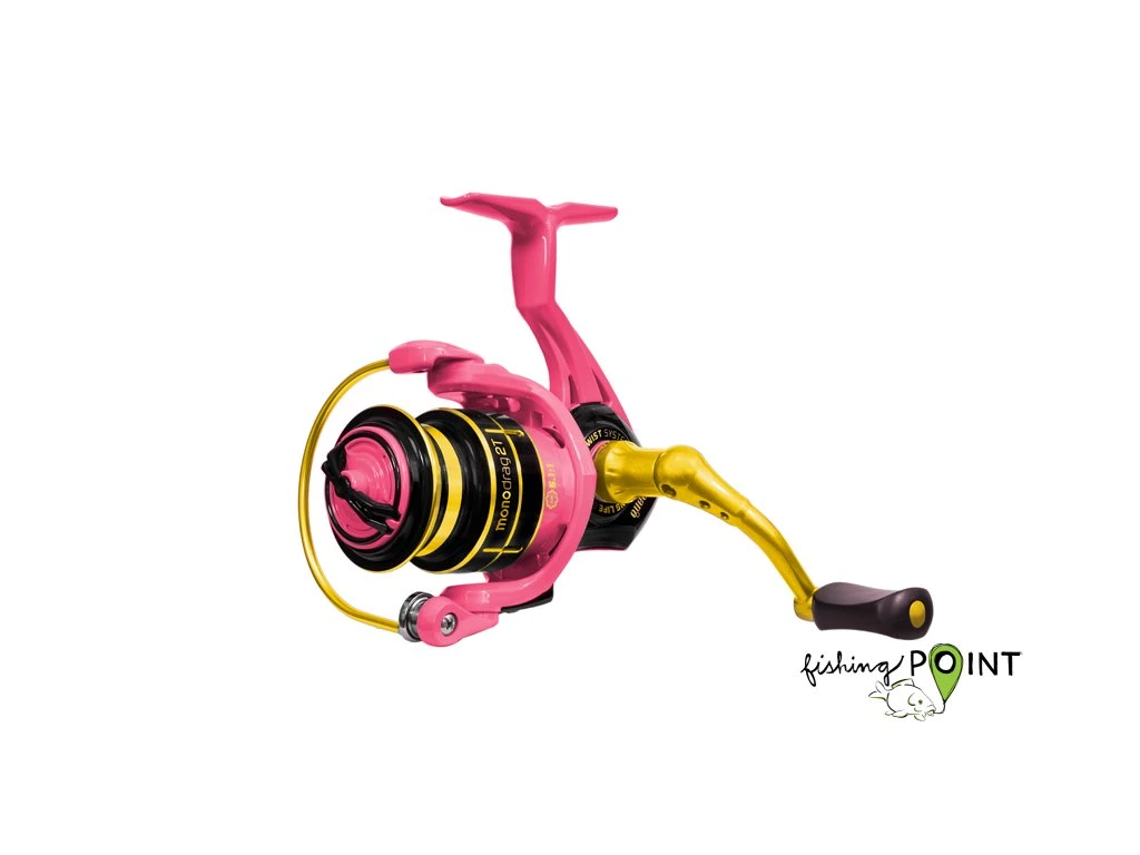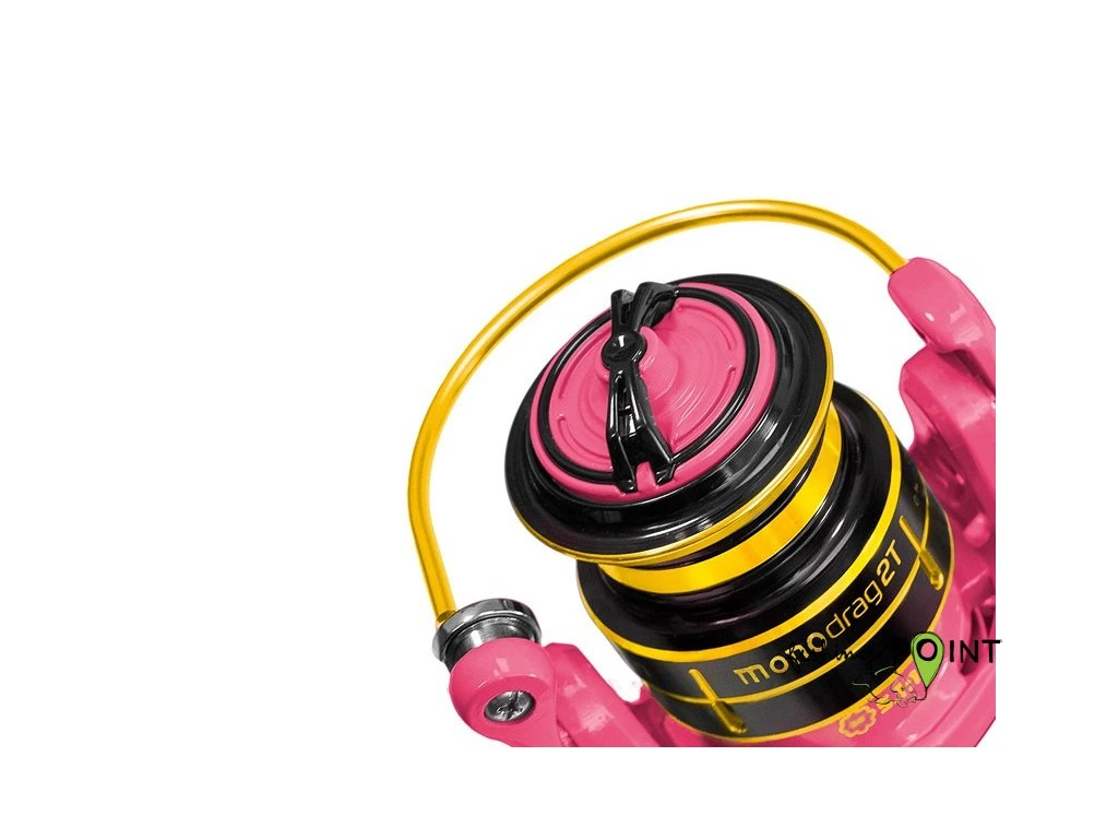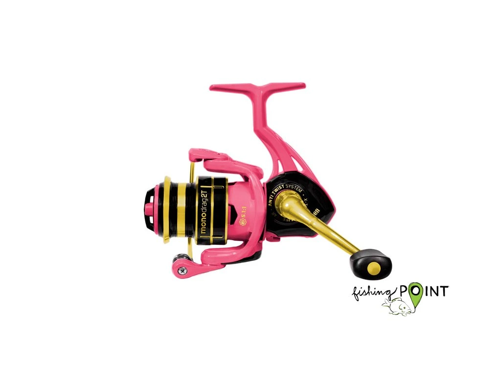 Naviják od společnosti Delphin, na který netrpělivě čekaly zejména fanynky produktů ze série QUEEN. Tak jak je charakteristické pro tuto řadu určenou něžnému pohlaví, i QUEEN MonoDRAG je nezaměnitelný díky své růžové barvě. Ta je však v tomto případě velmi pohledně kombinovaná se zlatými a černými doplňky. Samotný chod navijáku je velmi hladký a plynulý, na čemž má nepochybně největší zásluhu mechanismus s ideálním převodovým poměrem 5.1:1 a soustava 5+1 kuličkových ložisek. Pevné tělo zaručuje vynikající odolnost a dlouhou životnost navijáku. Pogumovaná rukojeť na klice dokonale sedne mezi prsty a umožňuje pohodlnou manipulaci během lovu. Výhodou je také odhozová hrana na kovové cívce, díky které budou vaše hody nejen přesnější, ale také o něco delší. Za účelem maximálně přesných hodů je možné využít také kovový klip na uchycení vlasce. Citlivá brzda disponuje dostatečně velkou silou potřebnou k zastavení unikající ryby. QUEEN MonoDRAG je vyráběn ve velikostech 2T a 3T a nepochybně bude skvostem výbavy každé rybářky.Technické parametry: