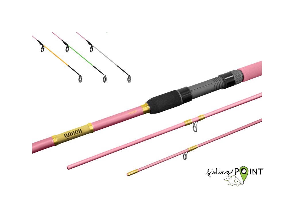 Tak jako všechny produkty z řady Queen, i tento prut je určen speciálně pro něžné pohlaví. Konkrétně pro ty dámy, které mají v oblibě zejména lov na feeder. Navržen je v přitažlivé růžové barvě v kombinaci se zlatými a černými prvky. Základem je ověřený štíhlý blank s parabolickou akcí a výbornými mechanickými vlastnostmi. Celá rukojeť je potažena EVA pěnou, která je velmi příjemná na dotek i ve studeném zimním počasí. Navíc je navržena v barevné dvojkombinaci růžové s černou, což vytváří vizuálně velmi pěkný prvek. Rukojeť je v jednom místě ergonomicky zúžená a ukončena je vkusným hliníkovým prvkem růžové barvy s logem. Díky citlivým špičkám, které jsou s prutem dodávány, vám neunikne ani ten nejjemnější záběr od malých ryb. Blank je osazen kvalitními a lehkými SIC očky, které nevytvářejí žádné nadbytečné tření a odpor při průchodu vlasce. V základu je prut dodáván se 1. karbonovou (Heavy) a 2. CarbonGlass (Light, Medium) špičkami. Feederové pruty QUEEN nebudou jen ozdobou každé rybářky, ale také plnohodnotným pomocníkem při lovu.Technické parametry: