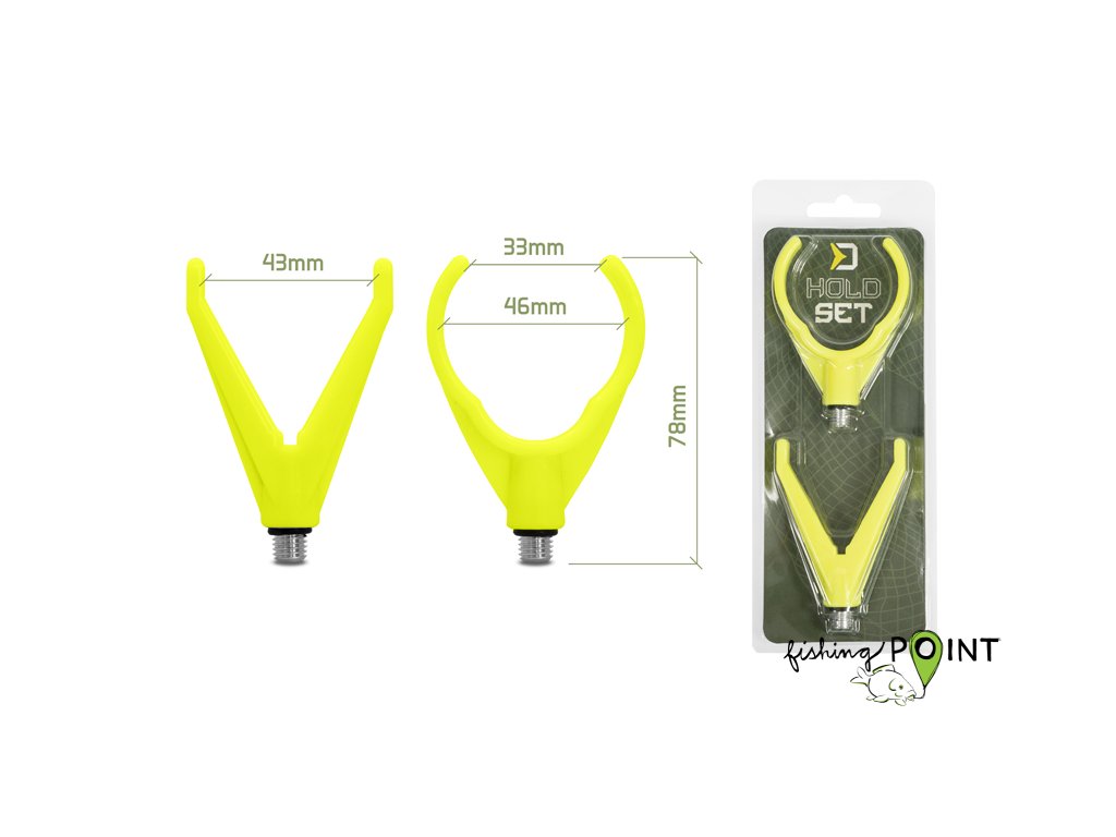 Sada držáků prutu, která se skládá z předního a zadního držáku s univerzálním závitem, pro přichycení k jakýmkoliv vidličkám či stojanům. Držáky jsou vhodné zejména pro feederisty, ale i rybáře, kteří rádi loví na položenou či plavanou. HoldSET je vyroben z odolného plastového materiálu a díky své praktičnosti a ceně jej ocení jak začátečníci tak zkušení rybáři. Zadní držák, navržený ve tvaru písmene U, umožňuje bezpečné uložení prutů s různými průměry rukojetí. Přední držák ve tvaru písmene V je opatřen drážkou, pro plynulý přechod vlasce během záběru.Doplňkové parametry