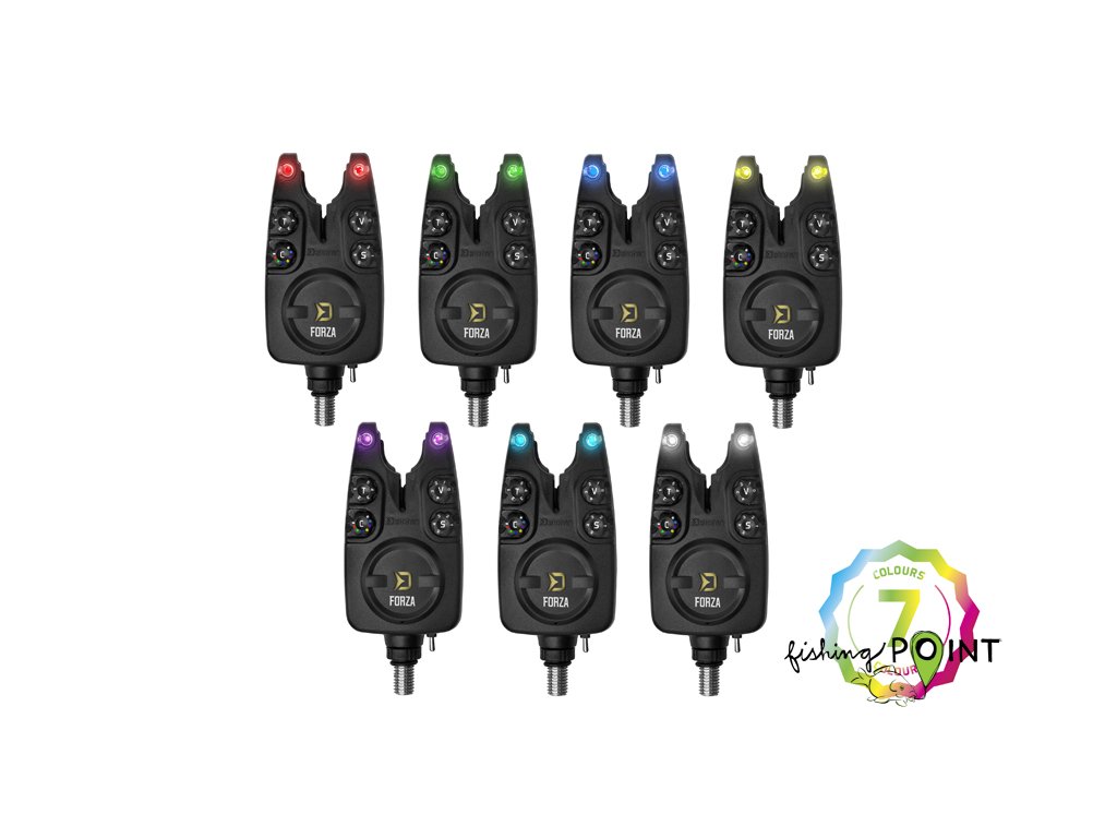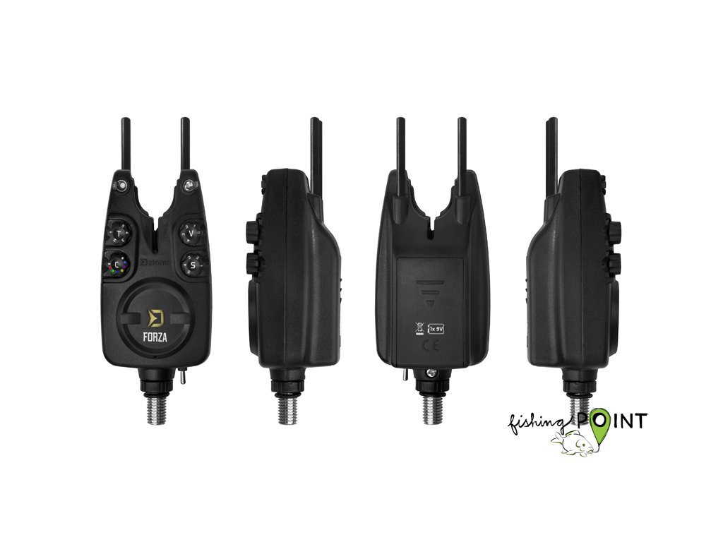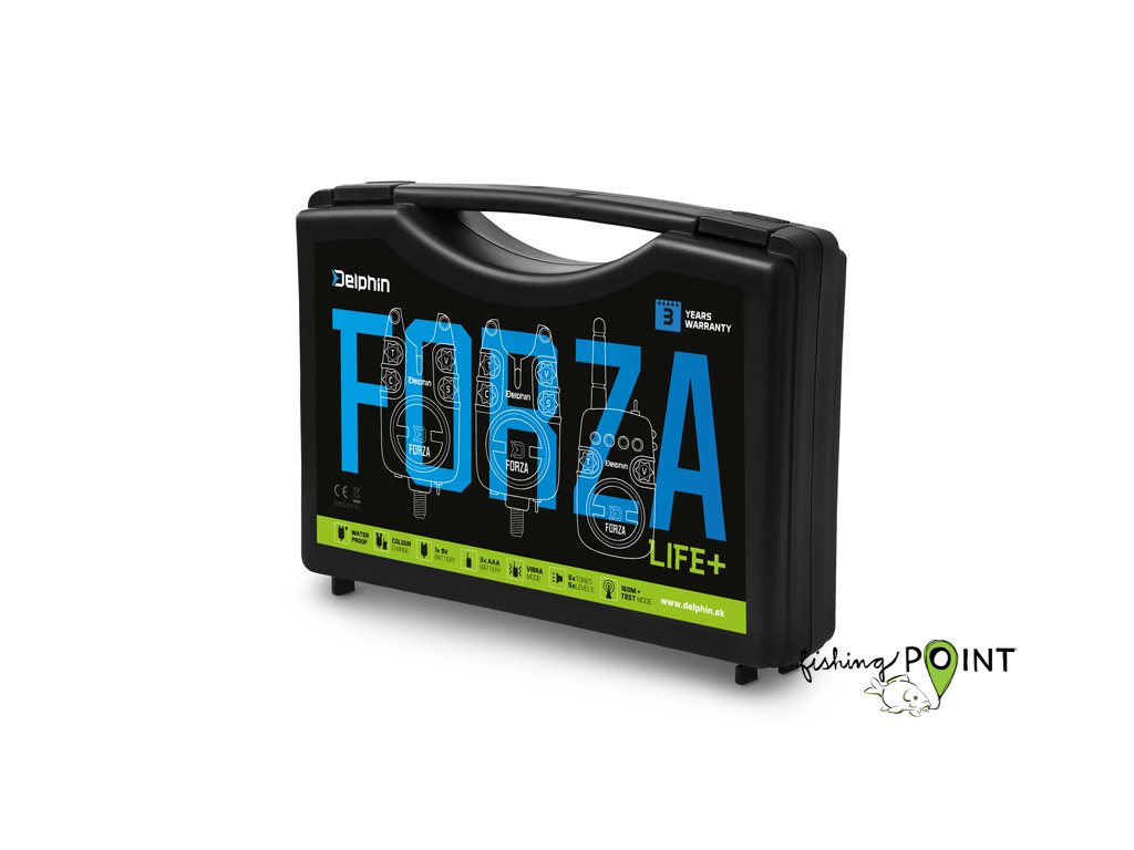 FORZA Life+ je sada signalizátorů s příposlechem, kde se díky vylepšení elektroniky a změně typu baterek v příposlechu podařilo dosáhnout výrazně vyšší výdrže celé sady. Kromě toho však byly zachovány všechny důležité technické parametry i design léty ověřené a tisíci rybářů testované sady FORZA.Delphin FORZA Life+ je sada signalizátorů s příposlechem poskytující spolehlivou světelnou, zvukovou či vibrační signalizaci záběru za každých okolností. Tělo signalizátorů a příposlechu je vyrobeno z černého pevného ABS plastu, což zaručuje odolnost vůči mechanickému poškození. Aspektem, který přispívá k dlouhé životnosti je také absolutní voděodolnost. Každý signalizátor je možné pomocí páčky přepnout do denního nebo nočního režimu. V případě nočního režimu se rozsvítí poziční LED dioda, díky které budete mít vždy přehled o rozmístění vašich prutů. Signalizátory disponují širokou škálou volitelných parametrů. Tón signalizace (spínač T) a citlivost v rozmezí 1-9cm (spínač S) lze navolit podle potřeby až z pěti možností. Při "padáku" resp. zpětném záběru budete upozorněni odlišným tónem. Hlasitost lze nastavit také v pěti různých úrovních, přičemž úroveň 0 představuje tichý mód. Nespornou devizou signalizátorů ze sady FORZA Life+ je možnost vybrat si ze 7 barev signalizační LED diody. Každý si tak vybere svou oblíbenou a pokud zatoužíte po změně, tak si jednoduše zvolíte jinou barvu pomocí otočného spínače "C (colour)" a nemusíte tak kupovat nový signalizátor. Ve spodní části se nachází vstup pro 2,5 mm konektor pro připojení svítícího indikátoru záběru. Každý signalizátor navíc disponuje závity na upevnění "snag gear", které jsou i součástí balení. Navíc k signalizátorům získáváte pevný transportní kryt a k přijímači stolní držák!