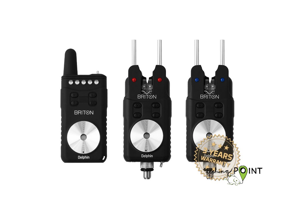 Excelentně zpracovaná sada, která je promyšlená do nejmenšího detailu. Už na první pohled vás osloví minimalistický design, který je nadčasový a který tuto sadu předurčuje k tomu, aby i po letech používání vypadala stále aktuální a neotřele. První dotek se sadou je také nadmíru pozitivní. Použité jsou díly bezchybného zpracování, všechny lícují, zpracování je na velmi vysoké úrovni a použité jsou ty nejkvalitnější materiály, včetně ušlechtile zpracovaných hliníkových krytů reproduktorů. Ty jsou jednoznačně tím nejsilnějším designovým prvkem této sady. Všechny plastové části jsou zase hodnotně pogumované, což evokuje dojem výrazně dražších sad. Komplikovaný přístup k bateriím přes neforemné kryty je minulostí. BRITON se vyznačuje velmi dobrým přístupem k napájení, a tím přispívá k velmi rychlému osazení baterií před lovem. Přijímač i signalizátor jsou oba shodně napájeny třemi kusy baterií typu AAA. Bonusem je to, že jsou automaticky součástí balení zdarma! BRITON navíc v dlouhodobých testech vynikal neskutečně dlouhou výdrží baterií a byl testován opravdu v těch nejextrémnějších výkyvech počasí (-25 ° C až + 35 ° C). Sada má v závislosti na podmínkách (okolní terén, hustota porostu, kapacita baterií) reálný dosah až přes 200m! Navíc díky speciálnímu tvarování těla a překrytí elektroniky i výbornou odolnost vůči vodě. Ani hustý déšť napříště nepřeruší spojení vašeho přijímače se signalizátory. Spuštění probíhá pomocí pákových přepínačů. To zaručí, že bez nejmenšího problému dokážete sadu ovládat i v naprosté tmě. Navíc je statisticky tento mechanismus mnohem méně náročný na poškození. U přijímače i signalizátoru máte na výběr až z 8 různých tónů a 8 různých úrovní hlasitosti (včetně tichého módu). U přijímače je samozřejmostí vibrační mód, indikace slabé baterie a uchovávání nastavení v paměti. Pro komfortnější přenos je grátis popruh na ruku. Signalizátor poskytuje možnost podsvícení rolničky, osazení tzv. uší (snag gears), 5 úrovní citlivosti (od 0.8 až po 4.0cm), indikaci slabé baterie a vstup pro 2.5mm jack. Také nastavení uchovává v paměti. Rolničku lze mechanicky zablokovat pomocí magnetu, a tím pádem sada při osazování na rodpod nesignalizuje falešné záběry. Při koupi kompletní sady dostáváte automaticky pevný kufřík a podrobný návod v několika jazycích. Už po prvním použití sady však budete nadšeni, jak jednoduše probíhá celé její ovládání. Za kvalitou sady Delphin BRITON si jednoznačně stojíme. I to je důvod, proč poskytujeme na tuto sadu záruku až 3 roky!Doplňkové parametry