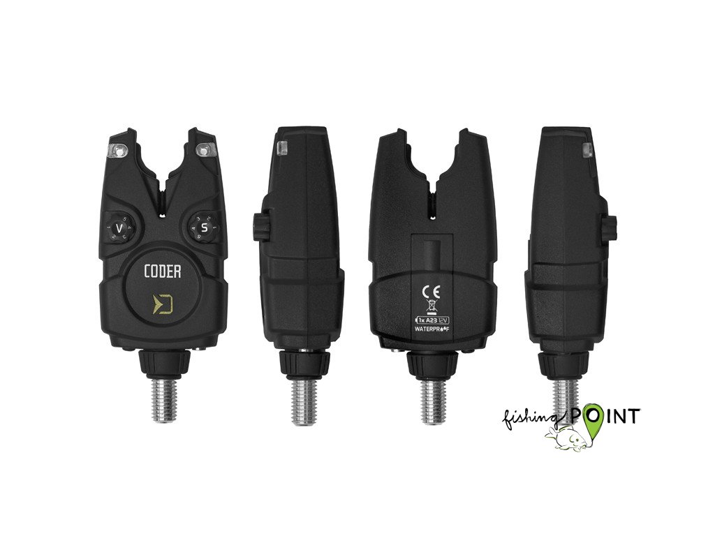 Delphin CODER je sada elektronických signalizátorů s příposlechem, u které se setkal ideální poměr příznivé ceny s výkonem. Jejími přednostmi jsou zejména spolehlivost a 100% funkčnost, kterou se může bez problémů rovnat i s dražšími sadami. Signál mezi signalizátory a příposlechem se dokáže v ideálních podmínkách přenést na vzdálenost až 140m. Celá sada je dodávána v tvrdém plastovém kufříku, který se stará o bezpečnost při transportu.Signalizátor je napájen 1x12V baterií typu LR23A, která disponuje dostatečně dlouhou výdrží. V případě slabé baterie vás signalizátor upozorní krátkým pípnutím. Pomocí spínače "V" je možné vybrat jednu z 5 úrovní hlasitosti, včetně tichého módu. Také si lze navolit požadovaný tón a úroveň citlivosti (v rozmezí 1-9cm), které mají také 5 různých úrovní. Nespornou devizou signalizátorů ze sady CODER je možnost výběru ze 7 barev signalizační LED diody. Každý si tak vybere svou oblíbenou a pokud zatoužíte po změně, tak si jednoduše zvolíte jinou barvu dle návodu. Na zpětný záběr vás upozorní odlišný tón a po každém záběru se rozsvítí na dobu 15 sekund paměťová dioda. Ve spodní části se nachází vstup pro 2,5 mm konektor pro připojení svítícího indikátoru. Během nočního lovu lze zapnout také poziční diodu.Příposlech spolehlivě signalizuje záběr zvukově, světelně a v případě přepnutí páčky do polohy vpravo i vibračně. Pomocí spínače "V" je možné si vybrat jednu z 5 úrovní hlasitosti včetně tichého módu a spínačem s označením "T" zase navolíme požadovaný tón.Příposlech disponuje čtyřmi barevnými LED diodami, které po záběru svítí nepřetržitě 15 sekund. Napájen je pomocí 1x9V baterie. V případě. že se její životnost blíží ke konci, dojde k indikací nepřetržitým krátkým pípáním. Příposlech si stejně jako signalizátory uchovává všechny zvolené nastavení v paměti.Do kufříku této sady je možné uložit maximálně konfiguraci 3 + 1 (3ks signalizátorů a jeden přijímač).Sadu CODER lze spárovat se světlem LightCONTACT.Technické parametry:Sada 2+1 obsahuje:- 2x Signalizátory záběru- 1x Přijímače- 1x Transportní kufřík- 1x Držák přijímače na opasekPŘIJÍMAČ/funkce:- 5 úrovní hlasitosti (spínač V, včetně tichého módu)- 5 různých tónů signalizace (spínač T)- Vibrační mód (pákový přepínač - poloha vpravo)- 4 barevné signalizační LED diody- Zvolené nastavení uchovává v paměti- Pákový přepínač ON/OFF/VIBRACE- Paměťová dioda - svítí nepřetržitě 15 sek. po záběru- Indikace slabé baterie (nepřetržité krátké pípání)- Mód pro testování dosahu soupravy- Dosah 140m v závislosti na terénu- Napájení 1x9V baterieSIGNALIZÁTOR/funkce:- Voděodolný- 5 úrovní hlasitosti (spínač V, včetně tichého módu)- 5 různých tónů signalizace- 5 úrovni citlivosti (spínač S)- 7 možných barev signalizační diody- Zvolené nastavení uchovává v paměti- Signalizace zpětného záběru - odlišný tón- Paměťová dioda - svítí nepřetržitě 15 sek. po záběru- Indikace slabé baterie krátkým pípnutím- Poziční noční dioda- Protiskluzové lůžko pro prut- Vstup pro 2.5 mm jack- Napájení 1x12V (typ LR23A)Doplňkové parametry