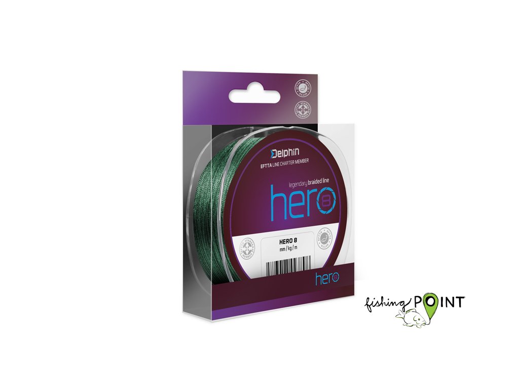 Delphin HERO 8 je spolehlivá šňůra, pletená z 8 PE mikrovláken. Systematickým pletením vláken je dosažena výborná nosnost šňůry, téměř nulová průtažnost a mnohem jemnější povrch oproti 4 vláknovým šňůrám. Záběr se tak okamžitě přenáší z nástrahy do rybářského prutu, což umožní reagovat mnohem rychleji než při vlasci. Navíc díky hladšímu povrchu je mnohem šetrnější k očkům prutu než 4 vláknové šňůry. HERO 8 je povrchově upravena, čímž je eliminována její nasákavost. Díky široké škále nabízených průměrů a nosností, je Delphin HERO 8 velmi vhodná pro použití na většinu rybolovných technik!Doplňkové parametry