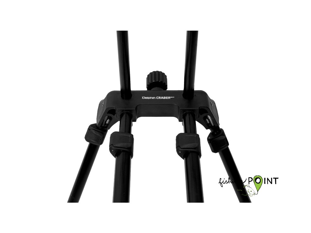 Delphin Craber Maxi je rodpod kompaktních rozměrů, který vás mile překvapí svou všestranností. Jeho rozměry je možné přizpůsobit podle podmínek při lovu, a proto je možné jej označit jako všestranného pomocníka na všechny typy vod. Spolehlivě poslouží na malých zarostlých vodách, ale i na velkých otevřených vodních plochách, kde je třeba se dokonale přizpůsobit danému lovnému místu. Díky černé barvě dokonale zapadne do okolního prostředí. Vyznačuje se pevnou a velmi stabilní konstrukcí, která vyniká svou nízkou hmotností. Jeho transportní rozměry ho předurčují na to, aby mohl být přenášen ve vaší rybářské tašce a v ochranném textilním pouzdře, které je také součástí balení. Nastavení výšky hrazdy je možné pomocí šroubů na obou stranách. Nohy jsou teleskopické a lze nastavit jejich sklon do tří různých poloh. Celý rodpod je vyroben z hliníkových profilů, které jsou spojovány spojkami z velmi odolného ABS plastu. To přispívá k dlouhé životnosti CRABERA. Odteď se nebudete muset rozhodovat, který rodpod si vezmete s sebou na ryby!Technické parametry: