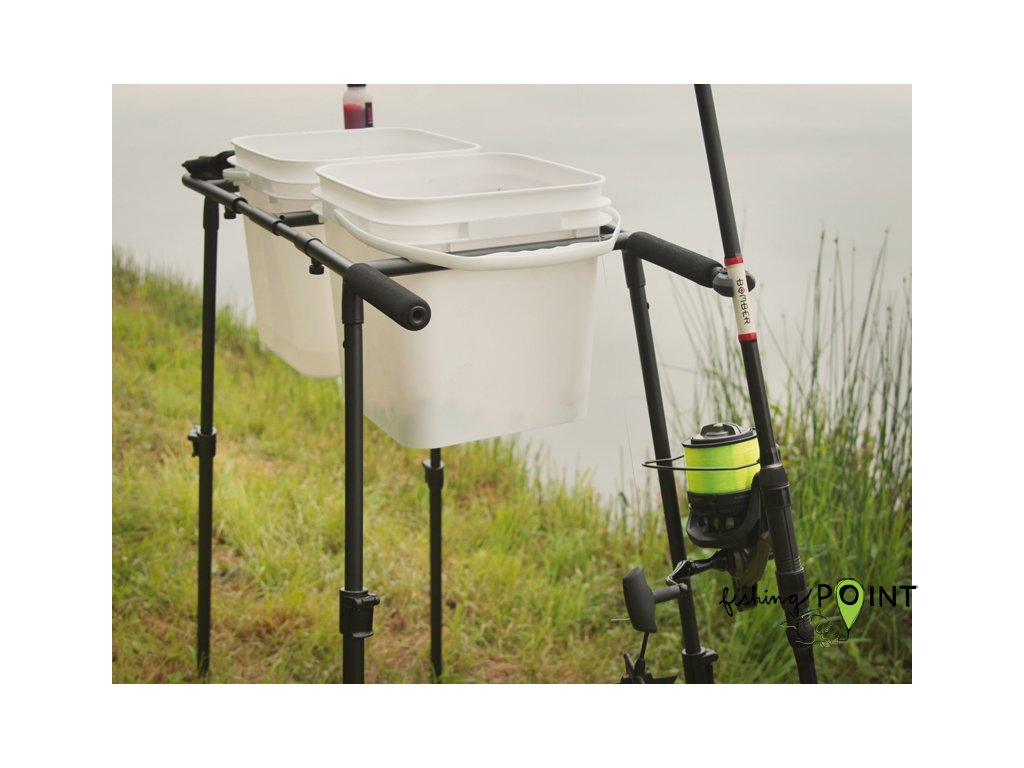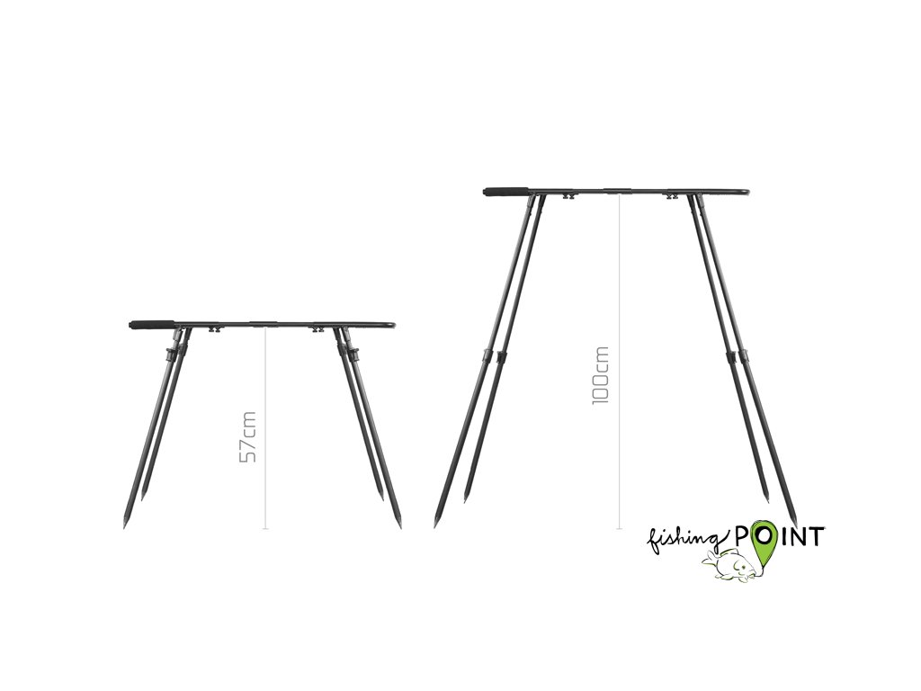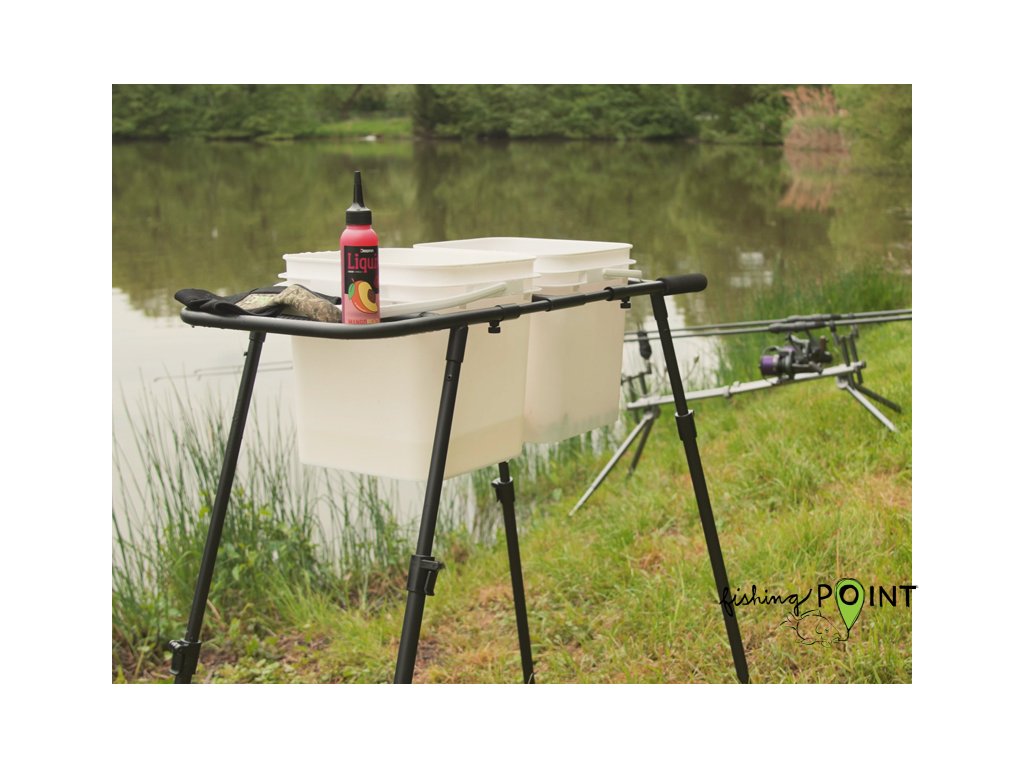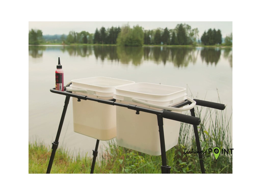 Delphin TOP SPOD je důmyslně navržený stojan na vědra s propracovanou konstrukcí, která nabízí stabilitu, ale zejména univerzálnost, umožňující osazení většiny standardních kbelíků používaných u kaprařiny. Konstrukce stojanu je vyrobena z kvalitních materiálů odolných vůči vnějším vlivům a mechanickému poškození. Stabilitu zajišťují čtyři odnímatelné nohy, které jsou navíc teleskopické, což umožňuje přizpůsobit výšku stojanu podle individuálních potřeb a terénu. Nohy je také možné použít i jako samostatné raszošky. Vrchní část stojanu umožňuje uložení dvou kbelíků najednou, přičemž je navržena tak, aby bylo možné rám velikostně přizpůsobit různým velikostem kbelíku. To je nepochybně jednou z hlavních deviz stojanu, která jej posouvá o krok vpřed oproti jiným modelům na trhu. Na vrchní části konstrukce se nachází i odkládací prostor určený pro příslušenství, jako například zakrmovací raketa či náprstek na házení. Tento prostor je vybaven otvory, které slouží k odvádění vody v případě srážek. Na opačné straně konstrukce se nacházejí dvě rukojeti na opření prutu. Aby se předešlo nežádoucímu poškození prutu, jsou rukojeti obaleny v EVA pěně, která zajišťuje dokonalou ochranu. Ve složeném stavu má stojan kompaktní rozměry, které zaberou minimum místa. Prodává se zabalený v praktickém textilním obalu, což usnadňuje jeho transport a skladování. Pokud už máte dost neustálého se krčení k vědrům s návnadou, Delphin TOP SPOD je ta správná volba!Technické parametry: