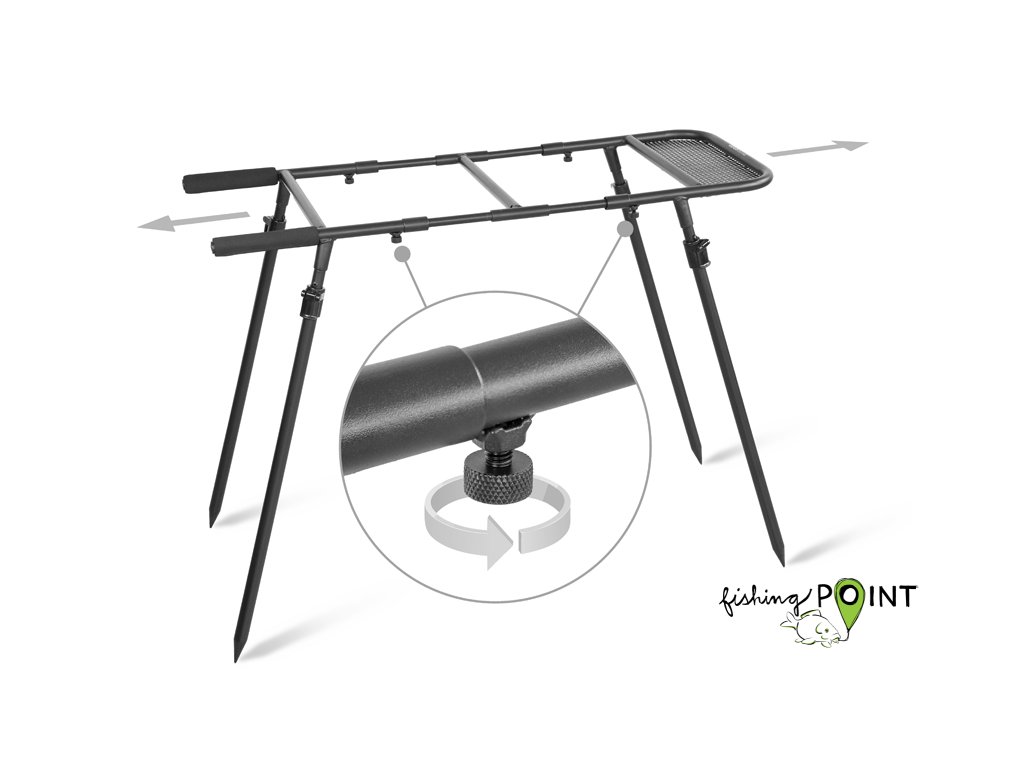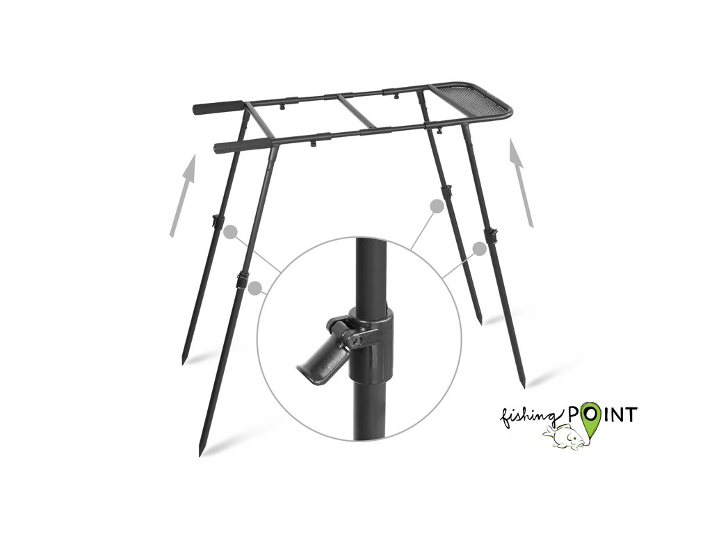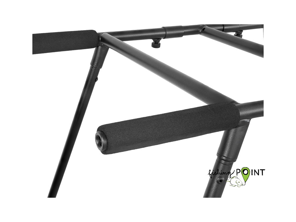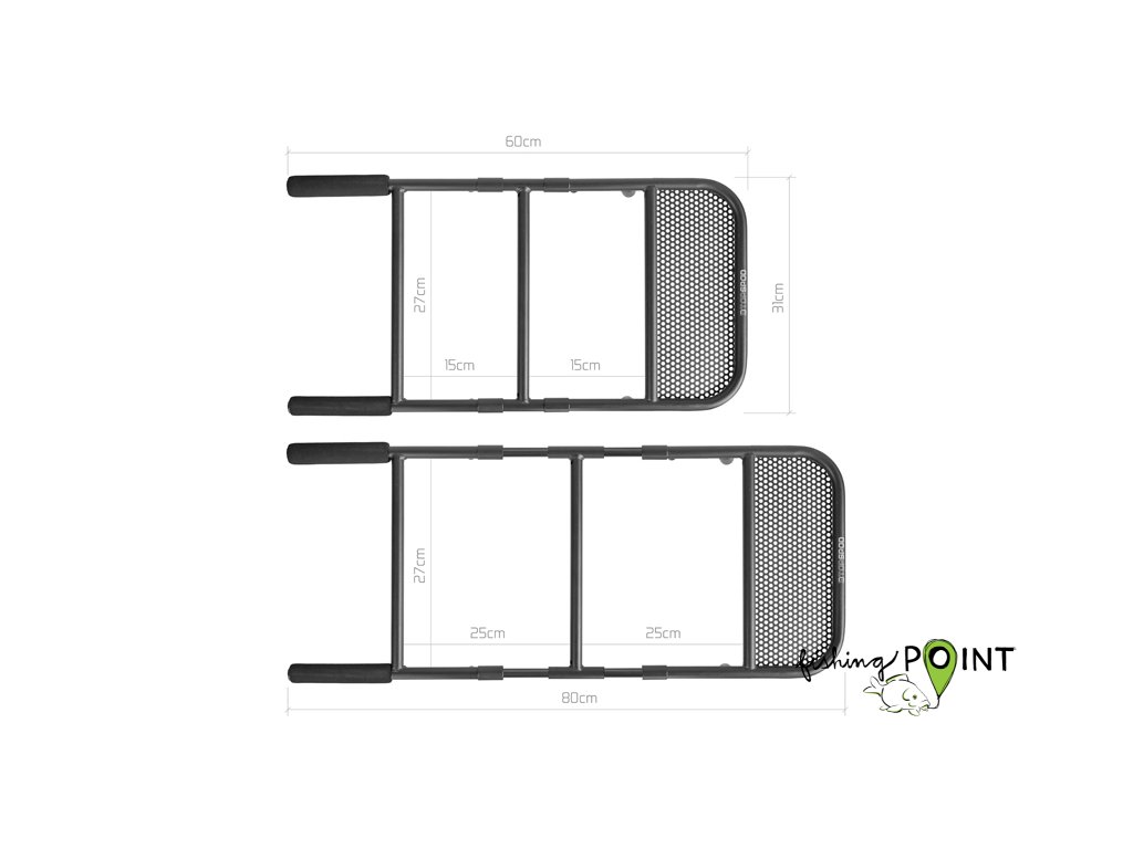 Delphin TOP SPOD je důmyslně navržený stojan na vědra s propracovanou konstrukcí, která nabízí stabilitu, ale zejména univerzálnost, umožňující osazení většiny standardních kbelíků používaných u kaprařiny. Konstrukce stojanu je vyrobena z kvalitních materiálů odolných vůči vnějším vlivům a mechanickému poškození. Stabilitu zajišťují čtyři odnímatelné nohy, které jsou navíc teleskopické, což umožňuje přizpůsobit výšku stojanu podle individuálních potřeb a terénu. Nohy je také možné použít i jako samostatné raszošky. Vrchní část stojanu umožňuje uložení dvou kbelíků najednou, přičemž je navržena tak, aby bylo možné rám velikostně přizpůsobit různým velikostem kbelíku. To je nepochybně jednou z hlavních deviz stojanu, která jej posouvá o krok vpřed oproti jiným modelům na trhu. Na vrchní části konstrukce se nachází i odkládací prostor určený pro příslušenství, jako například zakrmovací raketa či náprstek na házení. Tento prostor je vybaven otvory, které slouží k odvádění vody v případě srážek. Na opačné straně konstrukce se nacházejí dvě rukojeti na opření prutu. Aby se předešlo nežádoucímu poškození prutu, jsou rukojeti obaleny v EVA pěně, která zajišťuje dokonalou ochranu. Ve složeném stavu má stojan kompaktní rozměry, které zaberou minimum místa. Prodává se zabalený v praktickém textilním obalu, což usnadňuje jeho transport a skladování. Pokud už máte dost neustálého se krčení k vědrům s návnadou, Delphin TOP SPOD je ta správná volba!Technické parametry: