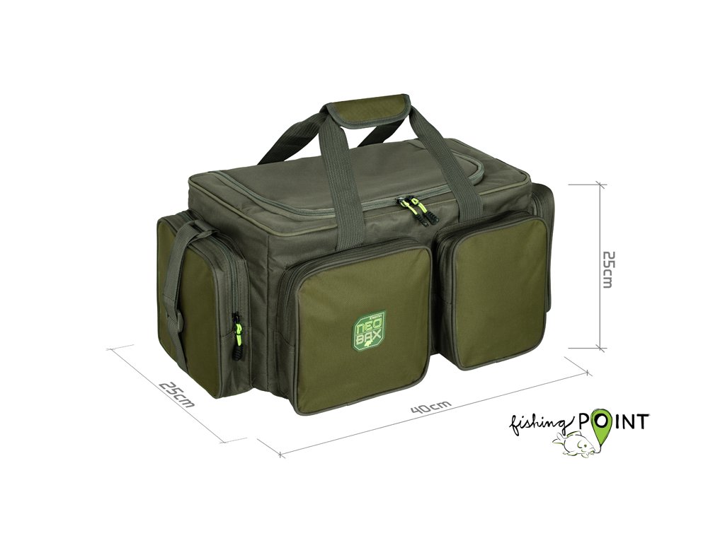 Odolná a praktická CarryAll taška vyznačující se velkým úložným prostorem a spoustou praktických kapes, díky čemuž bez problémů pojme rybářskou výbavu i oblečení. Díky svým rozměrům nabízí dostatek úložného prostoru a spolehlivě ochrání obsah před nepříznivými podmínkami. Vyrobená je z kvalitních materiálů, které prodlužují její životnost a zároveň chrání samotnou tašku. Pro maximální bezpečnost výbavy je celý vnitřní prostor důkladně polstrovaný – což v této cenové kategorii rozhodně není samozřejmostí. Spodní část je navíc opatřena nepromokavou vrstvou z odolného gumového materiálu, takže ji bez obav můžete položit i na mokrou či znečištěnou zem. Hlavní úložný prostor doplňují čtyři prostorné kapsy se zipem, umístěné na přední a bočních stranách tašky. Boční kapsy mají ideální rozměry pro uložení dokladů či různého rybářského příslušenství, například cívky s náhradním vlascem. Každá kapsa je opatřena kvalitním zipem s běžci ve výrazné barvě, díky čemuž je snadno najdete i během noci. O maximální komfort při transportu se stará nastavitelný ramenní popruh s polstrovanou částí na rameno a pevné rukojeti, které umožňují pohodlné nošení v ruce. Produkty ze série NeoBAX se vyznačují kvalitním zpracováním a odolnými materiály, důkladným polstrováním a vkusným designem, přičemž všechny tyto vlastnosti jsou zkombinovány v jednom produktu a dostupné za překvapivě příjemnou cenu. Technické parametry: Celkový rozměr včetně kapes ŠxVxH: 40x25x25cm Rozměr přední kapsa: 20x20 cm Rozměr přední kapsa: 15x20 cm Rozměr boční kapsy: 20x20 cmDoplňkové parametry