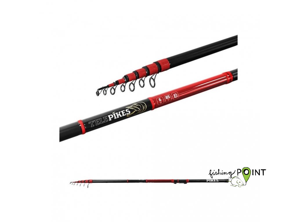 Prut na štikovou vyvěšenou, neboli na vývěs Delphin. Jedná se o 6m dlouhý silný teleskopický prut. Díky délce prutu snadno nastražíte živou, nebo mrtvou rybku za hranu rákosu, nebo blíže korytu, kde velcí dravci většinou číhají. Navíc díky 85 g akci se nemusíte bát nastražit i větší nástražní rybičku na velkou štiku.