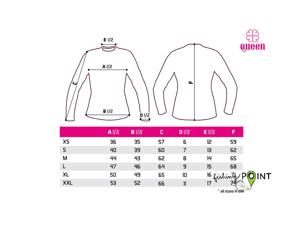 Vychutnejte si pobyt v přírodě i během chladného počasí s termoprádlem Delphin QUEEN 4LOVE. Termo set Queen byl speciálně navržen pro něžnější pohlaví, aby dokonale chránil před nízkými teplotami během rybářských výprav, vycházek v přírodě či zimních sportech. Kombinace použitých materiálů vytváří na dotek velmi příjemnou elastickou tkaninu, která zajistí maximální komfort i během studených zimních dní. Designově je set navržen v luxusní vínové barvě s růžovým prošíváním a prvky v motivu QUEEN. Vrchní díl Disponuje dlouhými rukávy a vyvýšeným límcem, což přispívá k udržení optimální tělesné teploty. Elastický límec, konce rukávů a spodní část jsou dodatečně prošívané pro zajištění dokonalého přilnutí ke kůži, aby se tím minimalizovaly úniky tepla. Spodní část vrchního dílu je mírně prodloužena, aby docházelo k ideálnímu krytí se spodky Delphin QUEEN 4LOVE i při pohybově namáhavějších aktivitách. Spodní díl Pružný pás se svojí elasticitou přizpůsobí každému typu postavy a při nošení horního dílu zajistí jeho polohu i během aktivního pohybu. K udržení tepelného komfortu přispívá také zúžené ukončení spodního dílu v oblasti kotníků. Termoprádlo QUEEN 4LOVE je vysokokompresní prádlo vyhotovené z tkaniny výrazně vyšší gramáže, než je obvyklé. V případě, že kvůli komfortu preferujete volnější střih, doporučujeme vzít o jedno číslo větší velikost, než standardně nosíte. Materiálové složení: 92% Polyester 8% Elastan Podle přiložené velikostní tabulky si prosím zkontrolujte vyhovující velikost.Doplňkové parametry