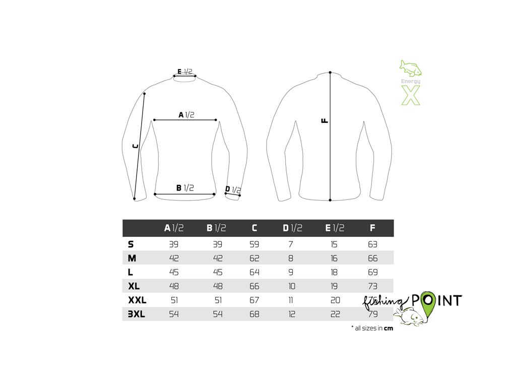 Nepodlehněte nástrahám chladného počasí a energicky vykročte na každou rybářskou výpravu s termoprádlem Delphin Energy X. Termoprádlo speciálně navržené pro rybáře, kteří milují volnost pohybu. Elastický materiál a ergonomický střih se dokonale přizpůsobí vaší postavě, díky čemuž budete nejen vypadat dobře, ale rovněž vám zajistí dokonalý komfort během nošení. Hřejivý materiál se postará o vaši teplotní pohodu a prodyšnost materiálu zároveň umožní tělu dýchat. Sportovní design v tmavě šedé barvě je doplněn o zeleno bílé logo a logo kapra na pravém rameni. Kromě rybolovu je termoprádlo vhodné i pro vyznavače aktivního životního stylu a pro každého, kdo si chce užít aktivní pobyt venku v suchu a teple. Správnou velikost oblečení si lze vybrat na základě velikostní tabulky. Vrchní díl Disponuje dlouhými rukávy a vyvýšeným límcem, což přispívá k udržení optimální tělesné teploty. Elastický límec, konce rukávů a spodní část jsou dodatečně prošívané pro zajištění dokonalého přilnutí ke kůži, aby se tím minimalizovaly úniky tepla. Spodní část vrchního dílu je mírně prodloužena, aby docházelo k ideálnímu krytí se spodky Delphin Energy X i při pohybově namáhavějších aktivitách. Spodní díl Pružný pás se svojí elasticitou přizpůsobí každému typu postavy a při nošení horního dílu zajistí jeho polohu i během aktivního pohybu. K udržení tepelného komfortu přispívá i zúžené ukončení spodního dílu v oblasti kotníků. Materiálové složení: 92% Polyester 8% ElastanDoplňkové parametry