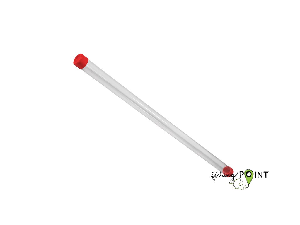 Univerzální transportní tubus na feederové špičky. Díky jeho transparentnímu provedení, budete mít vždy přehled o tom, co se v něm právě nachází. Průměr 3 cm a délka 68 cm umožňuje obsáhnout relativně velkém množství špiček, které tak budu pohromadě, aniž byste se museli obávat jejich poškození. Červené plastové zátky na obou koncích umožňují vkládání a vyjímání špiček z obou stran. Technické parametry: Rozměr: 3 x 68cmDoplňkové parametry