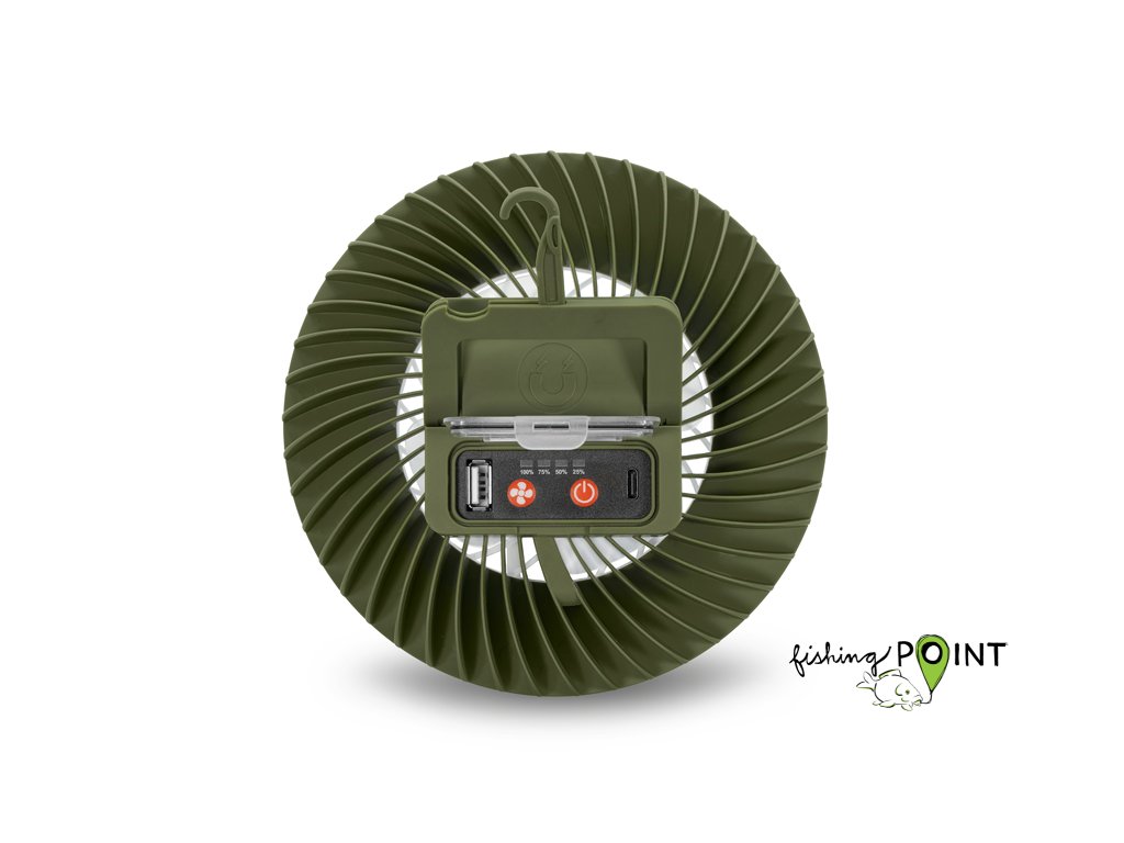 Delphin Ventix je ideálním doplňkem pro každého milovníka kempování. Kombinuje výkonné kempingové osvětlení s ventilátorem, díky čemuž poskytuje nejen světlo, ale také příjemné osvěžení během horkých dnů a nocí. Na zadní straně se navíc nachází USB port, díky kterému může Delphin Ventix sloužit také jako praktická powerbanka s kapacitou 4400 mAh. Tento multifunkční pomocník je vyroben z kvalitního a odolného materiálu, který spolehlivě odolává vnějším vlivům i běžnému mechanickému opotřebení. Pod vodotěsným krytem na zadní straně se nacházejí dvě ovládací tlačítka. Jedním tlačítkem jednoduše spustíte LED osvětlení, které nabízí dvě úrovně bílého světla a možnost přepnutí na zelené světlo. Prvním stisknutím se aktivuje bílé světlo se 100% intenzitou (350 lumenů), které dokáže svítit až 7 hodin. Druhým kliknutím se intenzita bílého světla sníží na 50 % (180 lumenů), přičemž výdrž baterie se prodlouží na 14 hodin. Třetím stisknutím se aktivuje zelené světlo s plnou intenzitou. Stejně jako osvětlení, i ventilátor nabízí tři režimy intenzity, díky čemuž si jej jednoduše přizpůsobíte podle aktuálních teplotních podmínek. Prvním stisknutím se spustí ventilátor na nízkou intenzitu, při které baterie vydrží až 19 hodin. Druhý stisk zvýší výkon ventilátoru, přičemž výdrž se zkrátí na přibližně 14 hodin. Při nejvyšší intenzitě, aktivované třetím stiskem, ventilátor vydrží pracovat přibližně 11 hodin. U ovládacích tlačítek se nacházejí i dva USB porty. USB-C port slouží k nabíjení samotného zařízení, zatímco USB-A port umožňuje využívat Delphin Ventix také jako powerbanku. Zabudovaný Li-ion akumulátor s kapacitou 4400 mAh zajišťuje dostatečnou výdrž pro osvětlení i ventilaci. Stav nabití si můžete jednoduše zkontrolovat pomocí LED indikátoru, který se rovněž nachází pod vodotěsným krytem. Delphin Ventix lze snadno upevnit do různých poloh dle potřeby. Na zadní straně se nachází praktické madlo, které slouží jako stojánek pro stabilní postavení zařízení. Přímo na madle je ukrytý výklopný háček, díky kterému můžete světlo pohodlně zavěsit například do bivaku, stanu či na větev. Pro ještě širší možnosti uchycení je Ventix vybaven také silným magnetem, který umožňuje připevnění na kovové povrchy. Technické parametry: Rozměry: 17x6,5 cm Režimy: 2 režimy svícení bílým světlem (100%-7h, 50%-14h), 1 režim zeleného světla (10h) Napájení: Li-ion 4400mAh, 3,7V Světelný výkon: 350 lm Nabíjení: USB-C (pomocí přiloženého kabelu) s funkcí powerbankyDoplňkové parametry