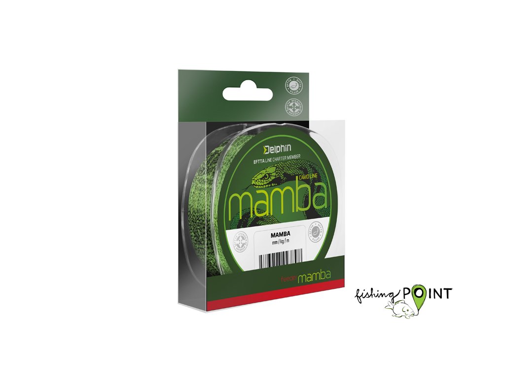 Excelentní feederový vlasec s unikátním 3D vzorem. MAMBA disponuje vynikajícími vlastnostmi jako pevnost v uzlu, či vysoká nosnost. Díky svému jedinečnému kamuflážovému provedení rychle splyne s okolním prostředím. Jeho mimořádně hladký a jemný povrch umožňuje využití při dalekém nahazování. Díky těmto vlastnostem je Delphin MAMBA považován za výborný univerzální vlasec, na který se můžete spolehnout v každé situaci.MM/LBS: 0.23mm/9.4lbs