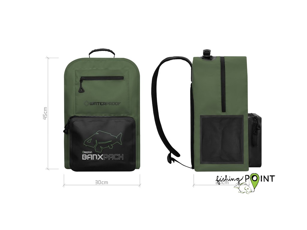 Delphin BanxPACK XL je voděodolný batoh, který spolehlivě ochrání uložené oblečení nebo rybářské náčiní před nepříznivým počasím i vydatnými dešťovými srážkami. Je vyroben z voděodolného EVA materiálu, který je zároveň snadný pro údržbu. To znamená, že v případě zašpinění stačí povrch přetřít hadříkem a za pár minut je suchý. Pokud se vám uvnitř vylije tekutina nebo atraktor, jednoduše ji vylijete a vnitřek snadno vyčistíte. Batoh nabízí prostorný hlavní úložný prostor, který doplňují praktické boční a přední kapsy. Díky velkému objemu do něj bez problémů uložíte boxy různých velikostí, oblečení či jiného vybavení, které chcete udržet v suchu. Po bocích se nacházejí kapsy vhodné například na láhev s vodou nebo vidličky. Na přední straně najdete dvě kapsy – menší na rybářské doklady, klíče nebo peněženku a větší, ideální pro uložení menšího organizéru. Všechny kapsy jsou opatřeny voděodolnými zipy s kvalitními běžci, které zaručují, že vaše vybavení zůstane v suchu. Pohodlí a komfort při transportu umocňují nastavitelné ramenní popruhy spolu s měkčenou výztuhou zad. Pro snadný úchop je na vrchní straně pogumované držadlo a po bocích jsou dvě plastová oka, za která si můžete připnout karabinu například s podběrákem. Decentní zeleno černý design doplňují funkční prvky jako taháčky na běžcích zipu nebo designové detaily, jako je například logo s originálním motivem kapra – OutLine. Přestože OutLine logo potěší spoustu kaprařů, své využití nepochybně najde napříč všemi rybolovnými technikami, ale i při jiných outdoorových aktivitách. Technické parametry: Objem: 27L Rozměry: 45x30x20cm Rozměr přední kapsy: 25x20x5cmDoplňkové parametry