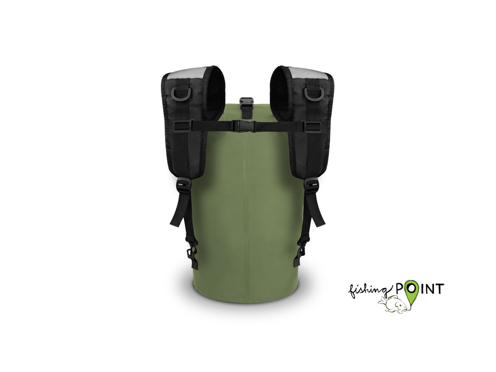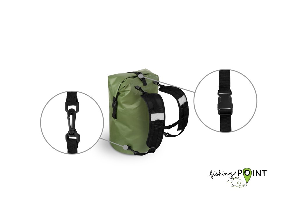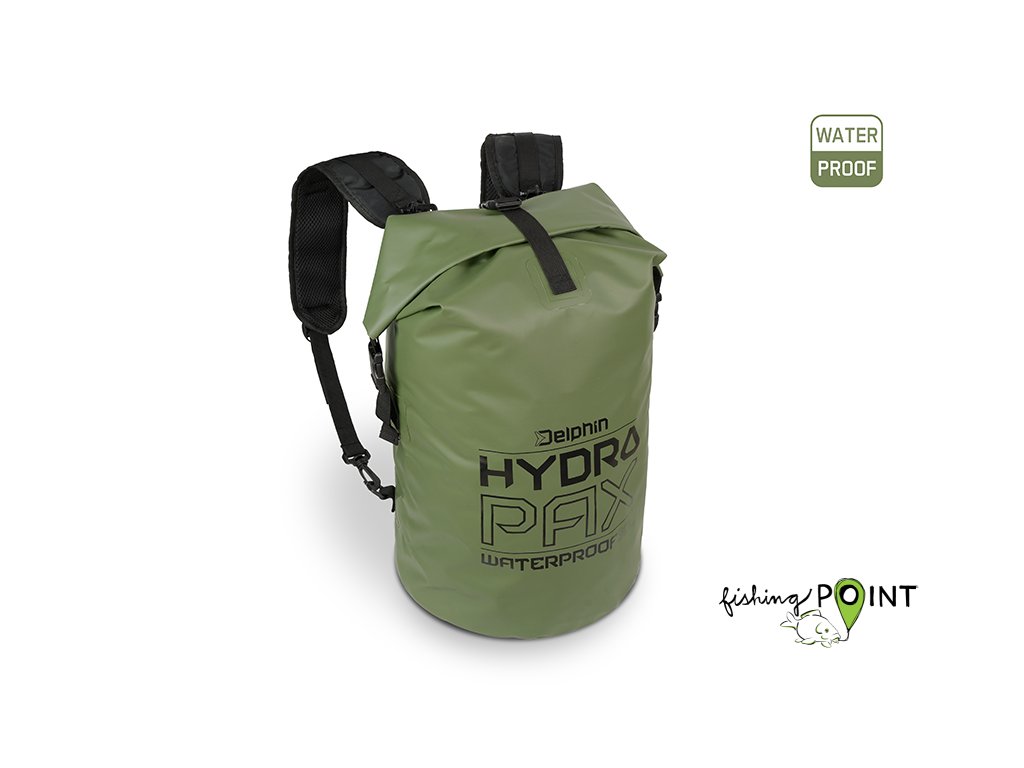 Kompletně nepromokavý batoh s odnímatelnými popruhy a univerzálním využitím jako EVA taška nebo klasický batoh. HydroPAX je vyroben z voděodolného EVA materiálu, který ochrání vaše náčiní, popřípadě oblečení před vodou a zároveň je velmi snadno udržovatelný. Povrch stačí přetřít hadříkem a během pár minut je suchý. Navíc pokud se vám vylije voda nebo jiná tekutina uvnitř, jednoduše ji vylijete a vnitřek očistíte. Zavírání batohu je zajištěno pomocí pevného popruhu se dvěma klipy na vrchu batohu, který si v rychlosti několikrát zarolujete a klipy zapnete o jejich druhou polovinu přichycenou na tašce. Pro dodatečné zajištění po uzavření slouží další plastový klip v horní části. Pro snadný a rychlý transport bylo přidáno praktické gumové držadlo a ramenní popruhy disponující sponami, pro uchycení na obou koncích, díky kterým je lze kdykoliv odebrat. Popruhy jsou dostatečně polstrované a z vnitřní strany jsme použili perforovanou tkaninu umožňující zlepšené odvětrávání během nošení. Jsou také nastavitelné, doplněné o plastový klip pro jejich vzájemné spojení a dvě odrazky pro zvýšení viditelnosti. Tmavě zelený materiál je doplněn černými doplňky a také zajímavou grafikou dodávající batohu osobitý styl.Doplňkové parametry