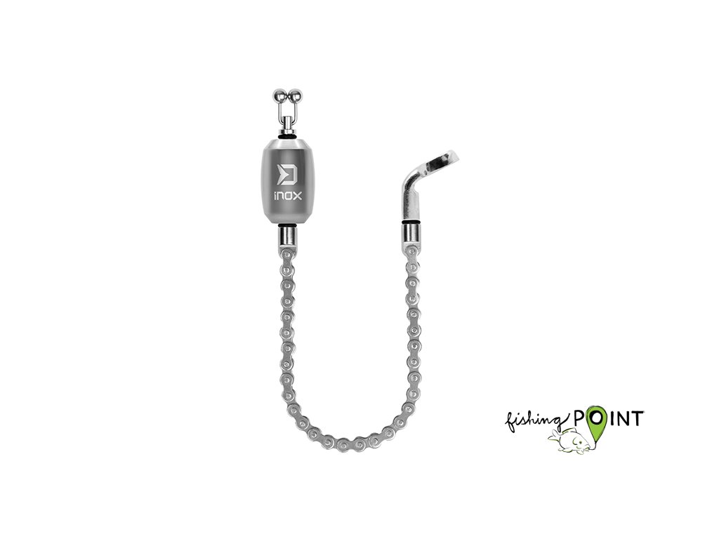 Pokud hledáte nezničitelný a super odolný závěsný signalizátor, který přežije extrémní počasí a vydrží léta věrně sloužit, přesně pro vás je zde Delphin INOX. Je kompletně vyroben z kovu, takže nehrozí zlomení nebo poškození kterékoli části.Kuličkový závěsný mechanismus perfektně drží na vlasci, a tak nedojde k jeho náhodnému odpadnutí a navíc je volně pohyblivý, což zvyšuje jeho flexibilitu. Tělo má oválný tvar se seříznutými konci a je dostatečně těžké, čímž je vhodné i pro dalekou vyvážku a lov v nepříznivých povětrnostních podmínkách. Řetízek připomínající řetěz na kole je mimořádně pevný, drží si svůj tvar a tedy zabraňuje nechtěnému kolísání signalizátoru ve větru. Kvalitní kovová hůl skvěle sedne na jakýkoli běžně prodávaný elektronický signalizátor záběru.