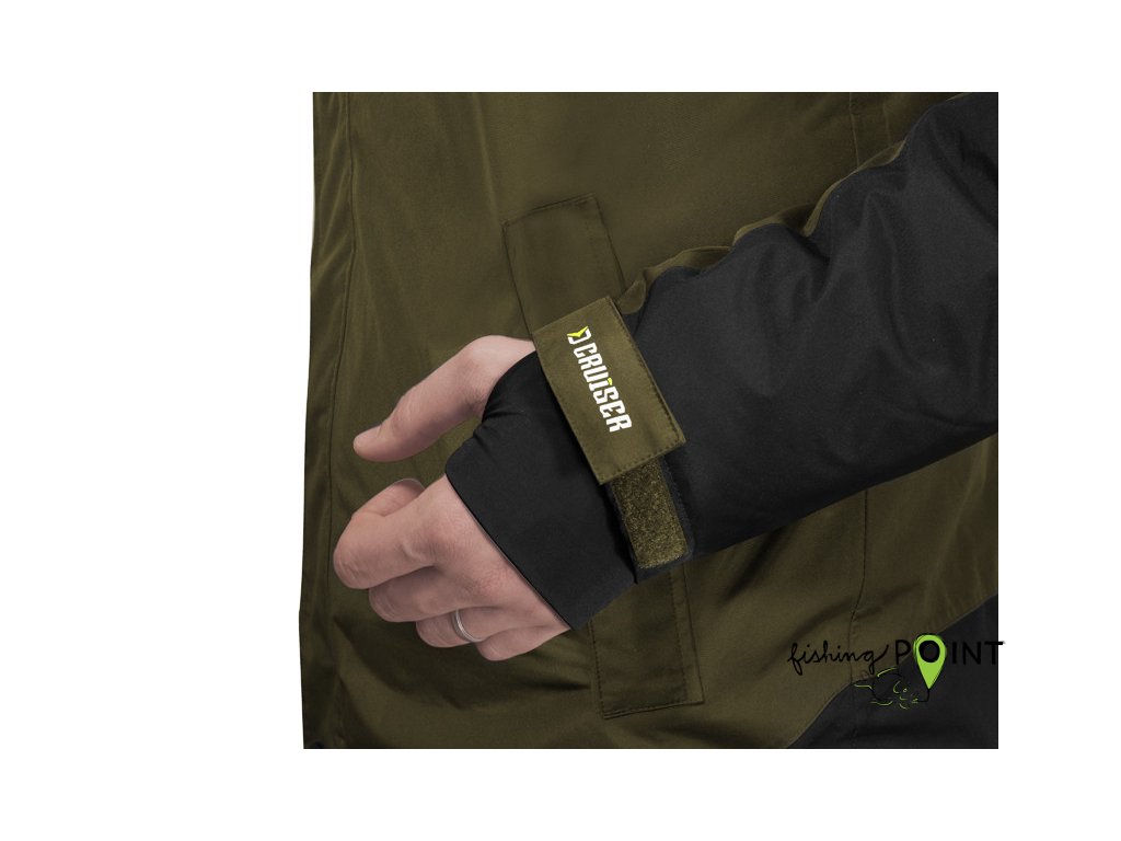 Nekompromisní, extra teplé oblečení, které vás ochrání před zimou a deštěm během studených zimních dnů. Takový je zimní komplet Winter Cruiser 5T, navržený značkou Delphin a testovaný v těch nejhorších povětrnostních podmínkách, se kterými se můžete u vody setkat. Komplet Winter Cruiser se skládá ze samostatně prodávané bundy a kalhot. Vnější vrstva bundy i kalhot je vyrobena z voděodolného materiálu s vodním sloupcem 5000mm a kompletně podlepenými švy. Tyto parametry zaručují maximální pohodlí, teplo a ochranu před deštěm během vašich rybářských výprav či jiného pobytu v přírodě. BUNDA Vnitřní strana bundy je opatřena na dotek velmi příjemnou fleecovou vrstvou, která pečuje o tepelný komfort. Stejný materiál je i na límci, díky čemuž nehrozí nepříjemný dotek na krku či škrábání. Uvnitř je i velmi praktická zipovatelná kapsa, vhodná například na doklady, či jiné cennosti. Kapsy se nacházejí také na vnější straně bundy. Všechny disponují výraznými, voděodolnými zipy, díky čemuž nehrozí natečení vody dovnitř. K voděodolnosti vnějších bočních kapes přispívají i překrytí, která jsou našita zvrchu. Boční kapsy mají navíc uvnitř fleecovou vrstvu, která vytváří ideální prostor pro zahřátí rukou. Bundu lze zapnout pomocí masivního a odolného dvojzipu, který je z vnější strany překryt lemem, čímž je chráněn před vodou a větrem. Pás bundy disponuje stahovatelnými gumičkami, které podstatně přispívají k udržení tepla uvnitř a minimalizují možnost podfouknutí. Samozřejmostí na bundě je kapuce, stahovatelná dvěma gumičkami. Devizou kapuce je také poutko se suchým zipem, pomocí kterého je možné ji velikostně přizpůsobit či zavěsit. Rukávy bundy jsou na zápěstích vybaveny stahovatelnými pásky se suchým zipem, ale i integrovaným ochranným rukávem na dlaň, přes který lze prostrčit palec.Při praní doporučujeme použít speciální prací prostředek na funkční oblečení, prát při max. 30°C, neždímat, nežehlit a v případě potřeby použít impregnační přípravek, který obnoví vodoodpudivou úpravu vnějšího materiálu.