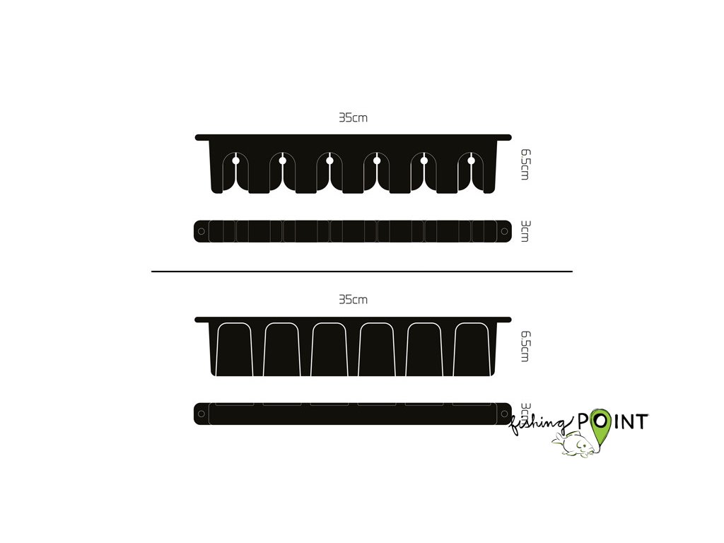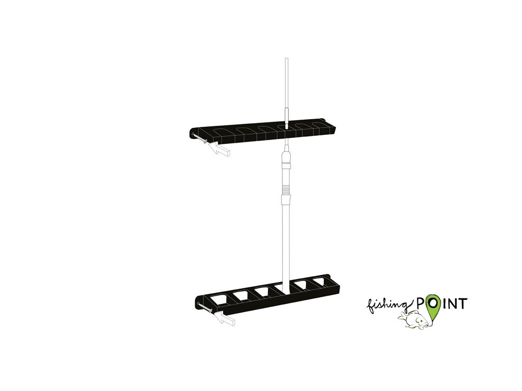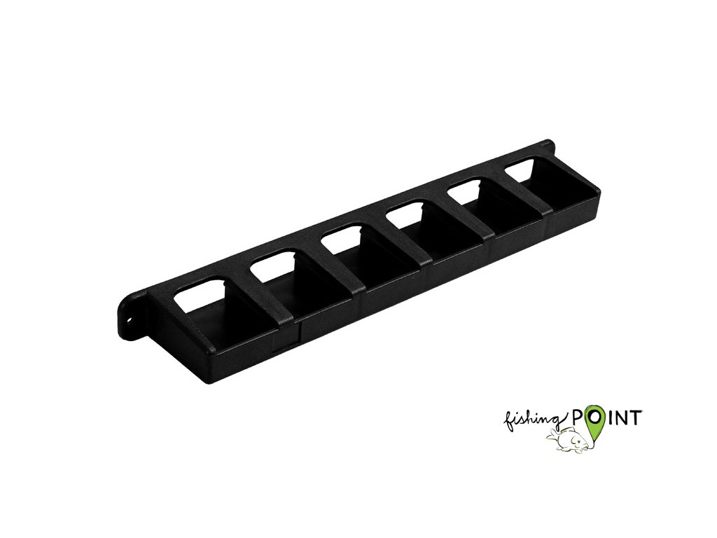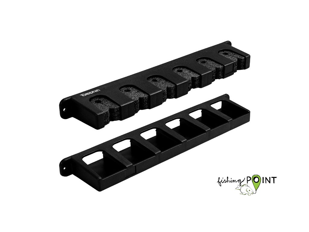 Praktický držák prutů, který je pomocí šroubů možné upevnit na stěnu. Skládá se ze dvou samostatných částí, přičemž každá z nich je vyrobena z velmi pevného a odolného plastu. Vrchní část je navíc opatřena měkkou pěnovou výztuží, díky čemuž bude blank každého prutu v tomto držáku chráněn.