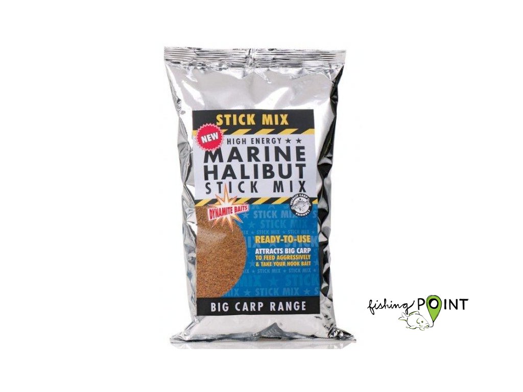 Dynamite Baits Stick Mix Marine Halibut 1 kg Vnadící směs s příchutí halibuta Užívá stejné neodolatelné přísady a příchutě jako pelety této řady Nová receptura nyní obsahuje přidaný extrakt ze zelených mušlí (Perna canaliculus) a játrový prášek Použití je ideální v kombinaci s peletami a těstem Marine HalibutDoplňkové parametry