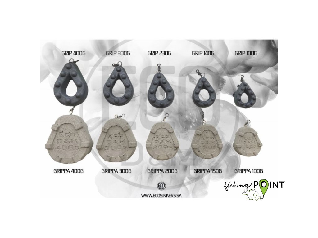Značka ECO D&M Vám představuje nové certifikované ekologické betonové zátěže pro sportovní a rekreační rybolov.Grippa je navržena v placatém tvaru s výčnělky betonu, které mají za úkol udržet zátěž na různých typech reliéfu vodního dna. Tento druh se stal nejpoužívanějším při lovu s člunem, a to na vyvážení montáže na delší vzdálenosti. Jeho zásadní funkce v rámci svého objemu zajišťuje mnohem menší zapadávání do bahna a měkkého dna. Také jeho tvar je přizpůsoben k udržení koncové montáže na určeném místě, a to i za hranicí 700m od břehu.Další zajímavost a inovací v tomto stylu Grippy je jeho struktura při pokládání koncové montáže ve vodním sloupci. I přes 20 m hloubku a nepříznivé podmínky umí přesně ve vodním sloupci stáhnout montáž s nástrahou na přesně určené místo bez zamotání montáže. Vděčí za to konstrukci a přizpůsobení rozložení váhy, která byla vyvíjena roky.V každém produktu je obsažena 100% nasákavost zátěže, kde je možné využít tento element za přítomnosti dipu, boosteru a jiné tekutiny pro zatraktivnění místa a na udržení dané aromy na krmném místě.Každé závaží obsahuje velikostně univerzální obratlík, který s lehkostí pasuje na většinu závěsek, které moderní kaprařina zná.Závaží obsahuje 7-složkovou železo-betonovou směs, která je netoxická, eco-friendly a splňuje environmentální nařízení životního prostředí.Všechny typy závaží jsou magnetické a tak se dají s lehkostí vytáhnout a vylovit z vodního dna a použít znovu, což je činí ještě hodnotnější a vysoce udržitelnými vůči přírodnímu prostředí.Závaží jsou konstruovány tak, aby vyhovovaly požadavkům a podmínkám trhu.Think Green - Fish GreenTechnické údaje:- certifikát, ECO D&M vlastní certifikát pro ECO SINKERS produkty. Při kontaktu s pitnou vodou není škodlivý pro lidi, zvířata a jiné živé tvory a organismy- univerzální obratlík, všechny produkty ECO SINKERS mají univerzální obratlík, který umožňuje připevnění a vypadnutí ke všem známým závěsným klipům- 7 složková směs, ECO SINKERS produkty obsahují 7 složkovou železobetonovou směs, která je netoxická, ekologická a vyhovuje všem environmentálním předpisům- nasákavost, i nejmenší váha ECO SINKER může zvýšit hmotnost o 3 gramy a nejtěžší hmotnost o 15 gramů. ECO sinkers jsou navrženy tak, aby po absorpci vody, dipu, boostru nebo jiné tekutiny výrobky nepřesáhly hmotnost, pod kterou je společnost označila. To je hlavní důvod, proč jsou ECO SINKERS o pár gramů lehčí, než je uvedeno v nadpisu, pro prostor s konstantní hmotností.- magnetické řešení, nezapomínejme však na magnetickou strukturu. Při použití odpadávacího systému je každý rybář schopen vylovit své zátěže pomocí magnetu a opětovně produkty použít- objemové vlastnosti, ECO SINKERS mají vyšší objem hmotnosti na cm3 než jiné klasické alternativy olova, takže produkty jsou menší a dobře kvalitativně uzpůsobeny pro využití v různých podmínkách- rovnováha těžiště, ECO SINKERS mají vyvážené těžiště, aby zátěže byly schopny rovnoměrně klesat ke dnu bez zamotávání koncové montáže a bez samovolné rotace a to i za nepříznivých podmínekGramáž: 100g, 150g, 200g, 300g, 400g a 600gDoplňkové parametry