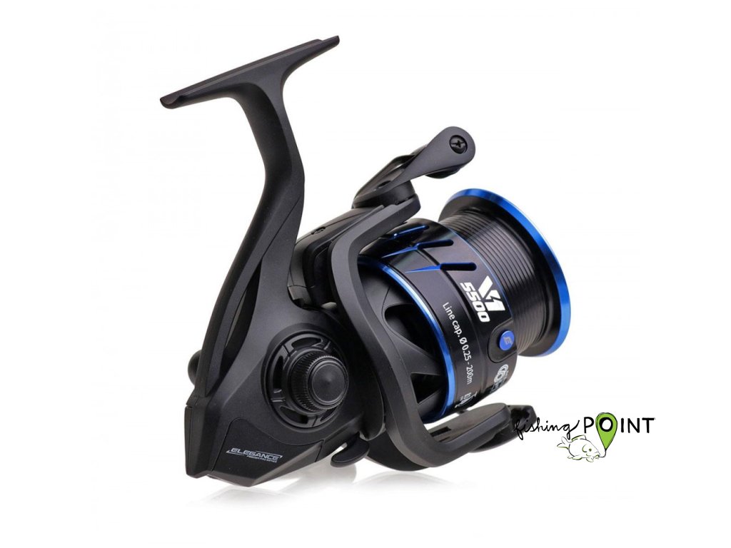 Naviják Elegance Feeder PRO V1 je vybaven 5+1 ložisky, má kovovou (hliníkovou) cívku se dvěma klipy v různých barvách, přesnou a citlivou přední brzdu a pevnou kovovou kličku s příjemnou, pohodlnou, pogumovanou rukojetí.