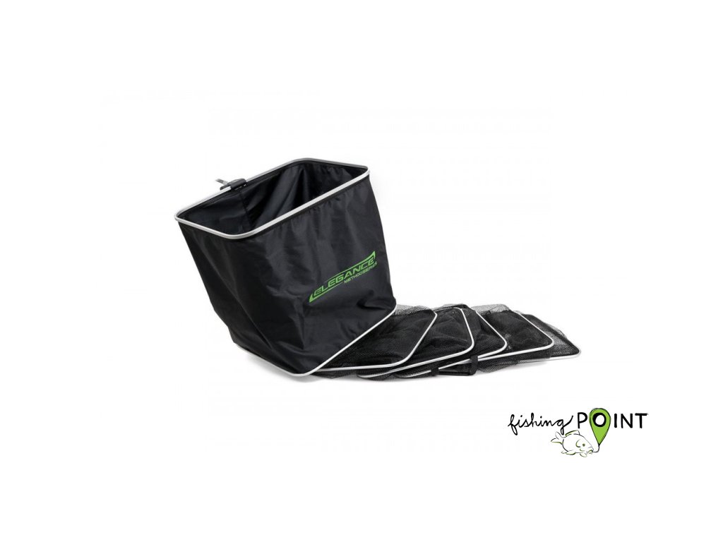 Prvotřídní závodní vezírek s obdélníkovými obručemi z hliníku a silnou pogumovanou síťovinou. Část mezi rámem vezírku a první obručí je vyztužena pevným, odolným materiálem a je mírně zvětšená pro snadnější vkládání ryb. Rám vezírku obsahuje mechanismus pro nastavení úhlu a závit pro nasazení na držák. Součástí balení je zároveň i kvalitní praktický přepravní obal.Doplňkové parametry