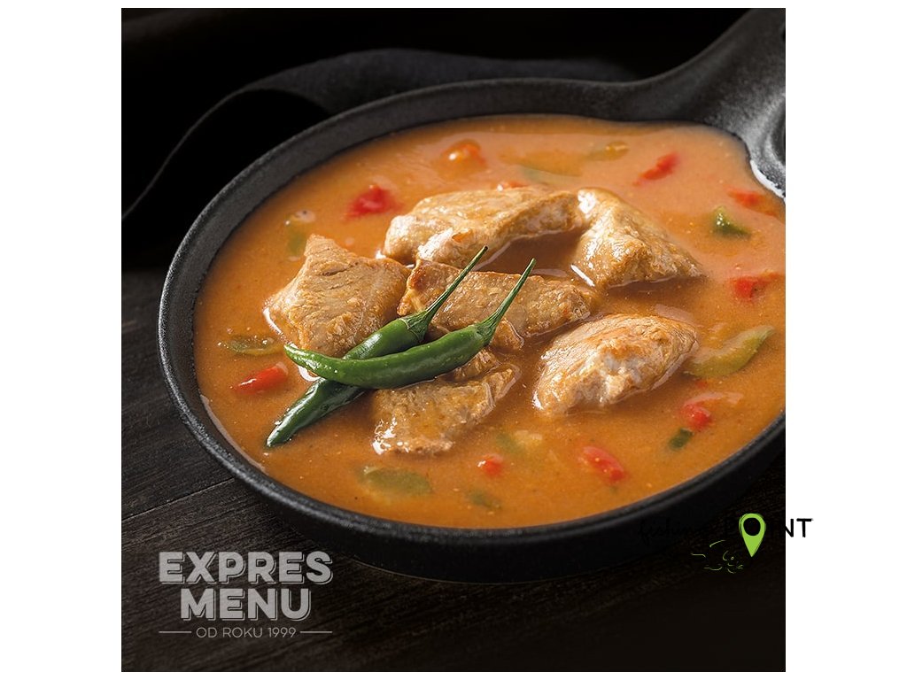 Pokrm je ideální pro milovníky ostrých jídel, kteří v omáčce ocení chuť sterilovaných okurek, kapie a feferonek. Základem jsou šťavnaté kousky vepřové kýty. Jako přílohu doporučujeme rýži.