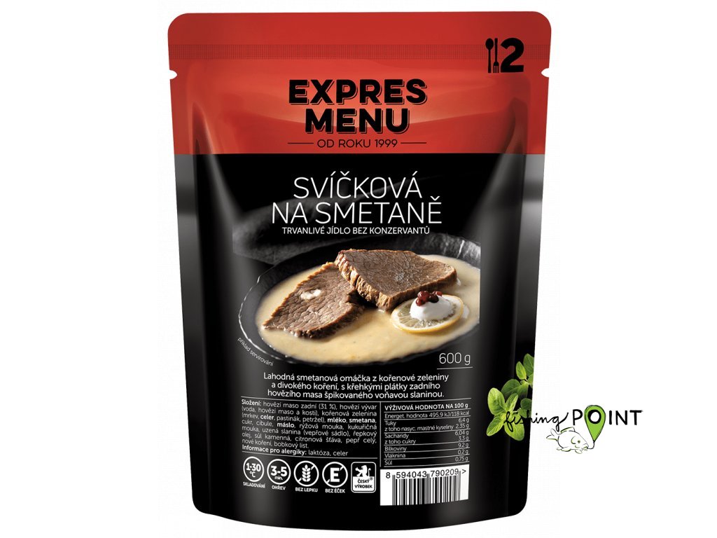 Nejoblíbenější a nejprestižnější jídlo české kuchyně připravené podle osvědčené receptury. Zadní hovězí maso je prošpikované, dušené doměkka v zeleninovém základu z mrkve, petržele, celeru a cibule, ochucené bobkovým listem, tymiánem a novým kořením. Omáčka zahušťujeme smetanou a bezlepkovou moukou. Porce: 2 Hmotnost: 600g Popis: Hovězí maso zadní prošpikované špekem podle klasických receptur, dušené doměkka v zeleninovém základu. Složení: hovězí maso zadní (31 %), mléko, smetana, kořenová zelenina (mrkev, celer, pastinák, petržel), rýžová mouka, kukuřičná mouka, řepkový olej, cibule, uzená slanina (vepřové sádlo), citron, máslo, cukr, sůl (jedlá kamenná sůl, jodičnan draselný), pepř celý, nové koření, bobkový list. Informace pro alergiky: mléko, smetana, celer, máslo Výživová hodnota na 100g Energetická hodnota 555 kJ / 133 kcal Tuky 6,5 g Nasycené mastné kyseliny 2,7 g Sacharidy 11,3 g Cukry 4,3 g Bílkoviny 7,2 g Sůl 1,47 g potravina bez lepku Hotový pokrm sterilovaný skladujte v suchu a temnu při teplotě +1 až +30 °C. Otevřený výrobek uskladněte v chladničce a spotřebujte do 48 hodin. Doba spotřeby jídel EXPRES MENU je 36 měsíců.Doplňkové parametry
